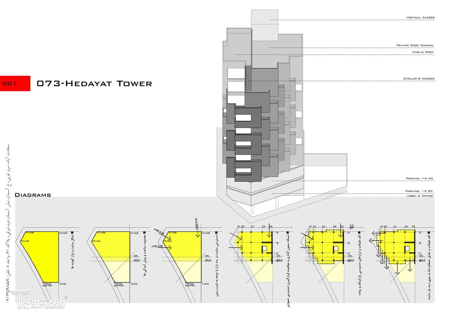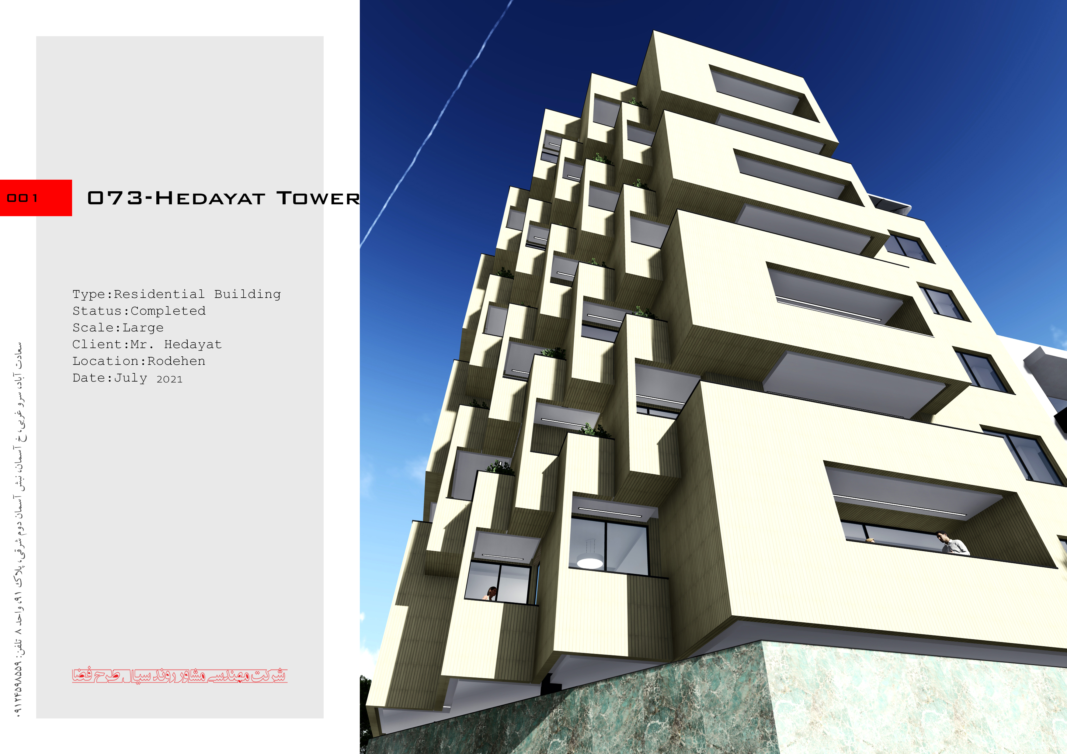 برج هدایت یک ساختمان 10 طبقه درشهر رودهن است. در طراحی این پروژه سعی شده است که از پتانسیل سه بر بودن زمین در حجم بنا استفاده شده است. برای اینکه شکل قناسی زمین داخل واحدها تاثیر نداشته باشد از استراتژی پلکانی در حجم و نما استفاده شده است.