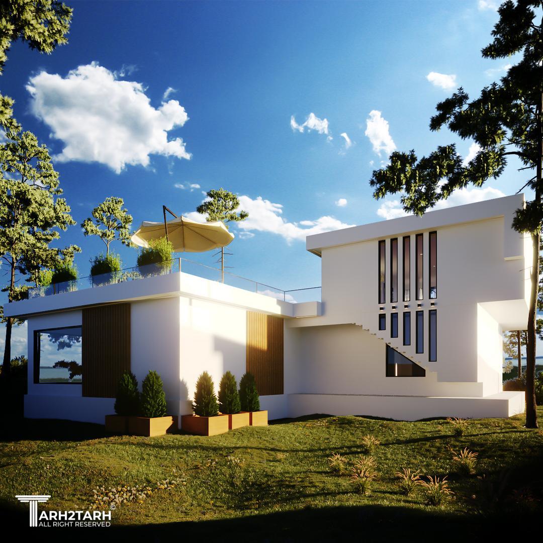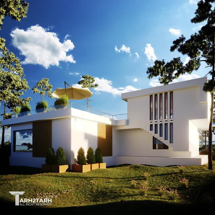 یک زمین ۵۰۰۰متری که محدودیت اجرا در سطح اشغال داشتیم همچنین از پیش استخر داخل زمین اجراشده و قرار بود استخر داخل ویلا قرار گیرد