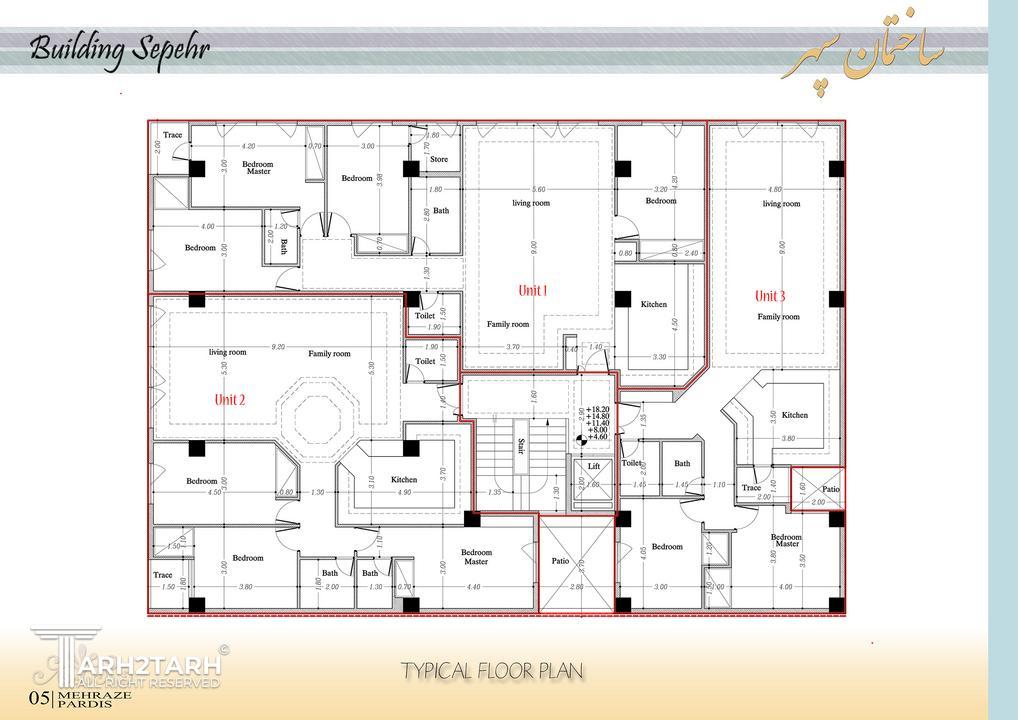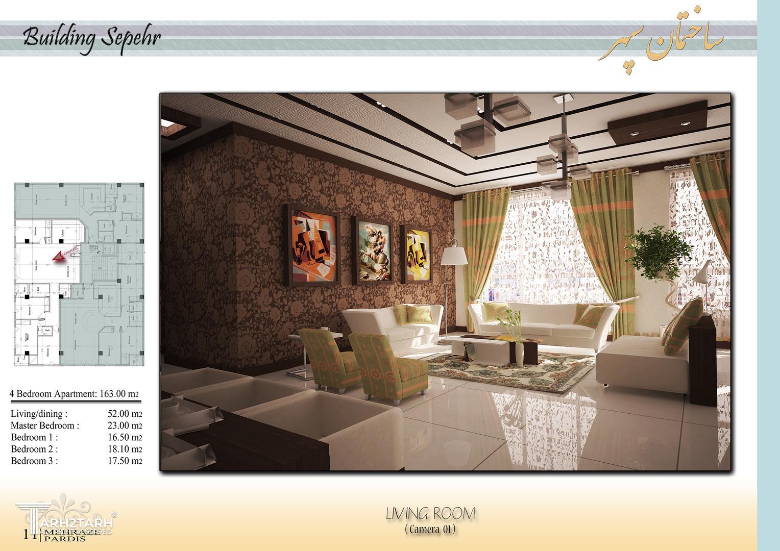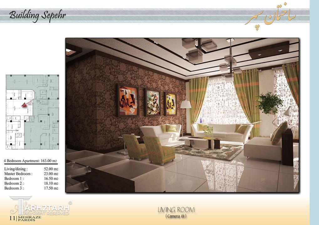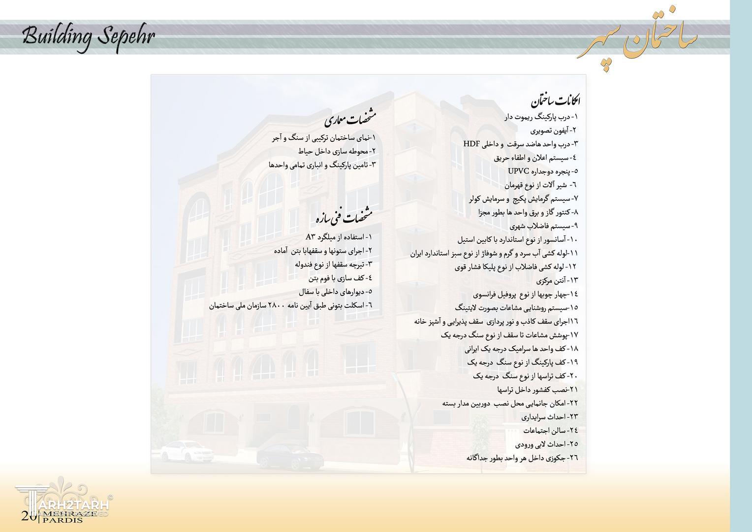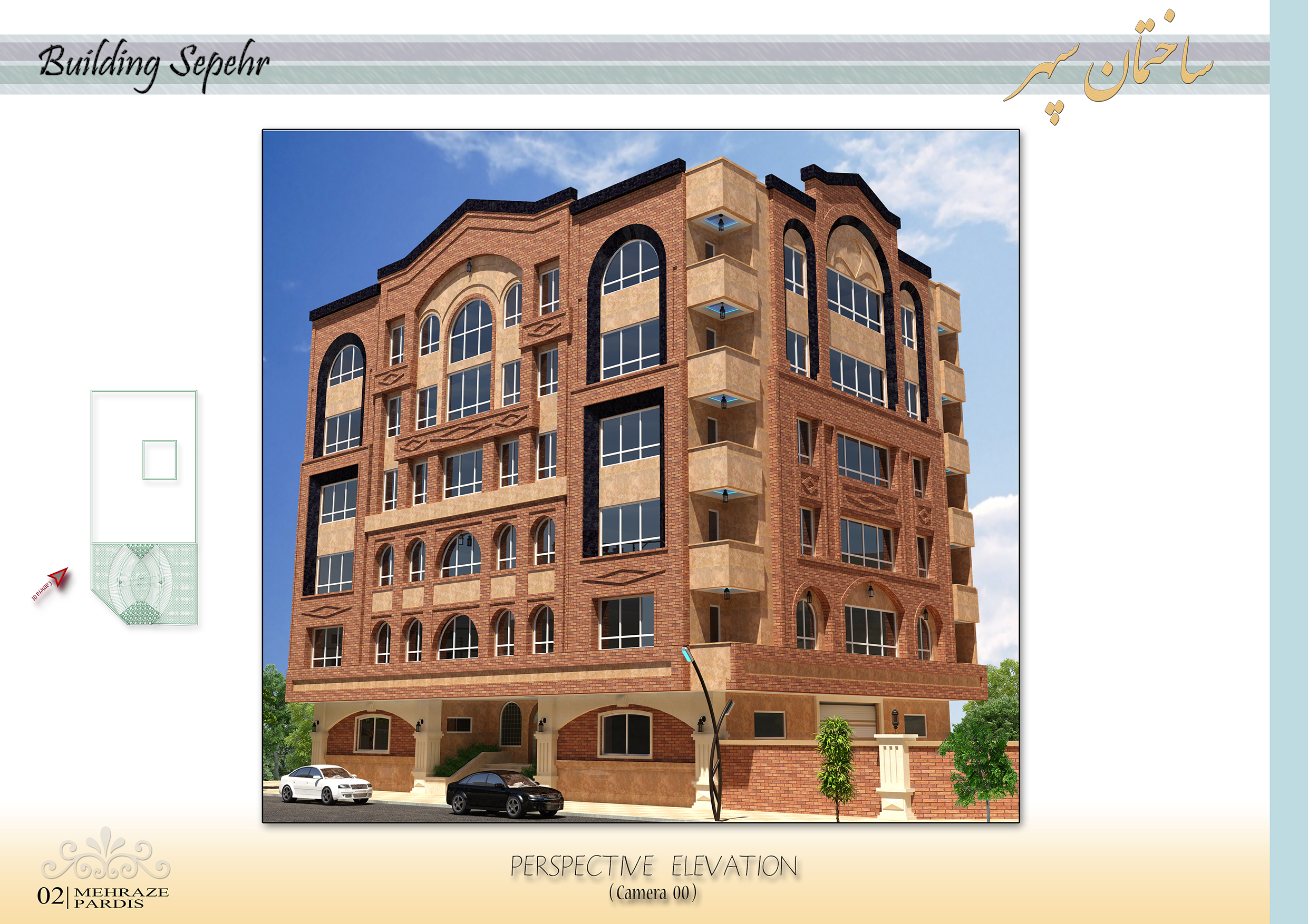 این ساختمان با معماری بسیار زیبا فضاهای ایده آلی را ایجاد کرده و جزو اولین ساختمان هایی میباشد که در نمای آن سنگ و آجر با فرم هندسی خاصی کنار هم قرار گرفتهاند. و البته مدل و رنگبندی کاغذ دیواریها مطابق با سلیقه کارفرما میباشد.