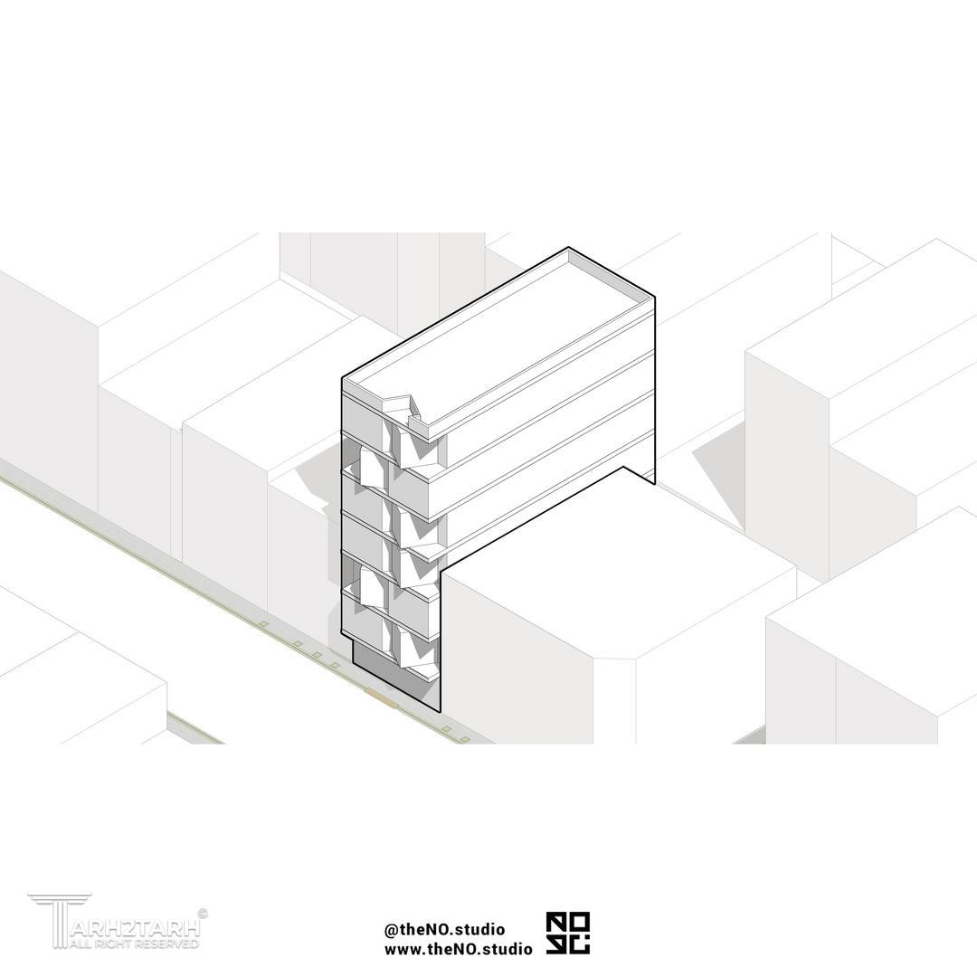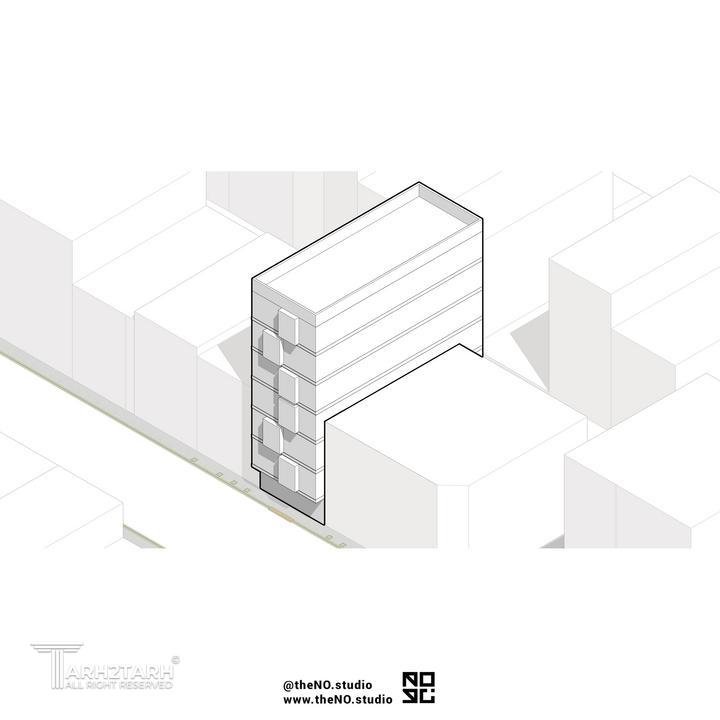 در این پروژه با توجه به منظری که در دو طرف وجود داشت غذاخوری در طبقات مختلف به صورت یک مکعب چرخیده در حجم نمایان شد و فضاهای داخلی و خارجی ارتباط قویتری با یکدیگر ایجاد کردند.