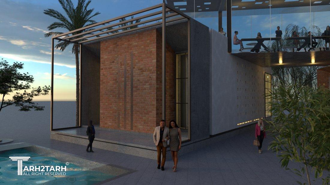 این پروژه ابتدای امر به یک طراح محلی در کوار برای طراحی سپرده شد که کارفرما پس از اجرای اقامتی ها و تجاری ها، متوجه شد که لکه رفاهی و رستوران قابل اجرا نیست و به بنده محول شد، با تاکیدات کارفرما بر بخش رفاهی خدماتی و میزان بودجه و امکانات ایشان، این کانسپت که مبتنی بر خطوط سایت و همگرا کردن نواقص موجود و دعوت کنندگی برای فراتر از توقف راننده ها طراحی شد.