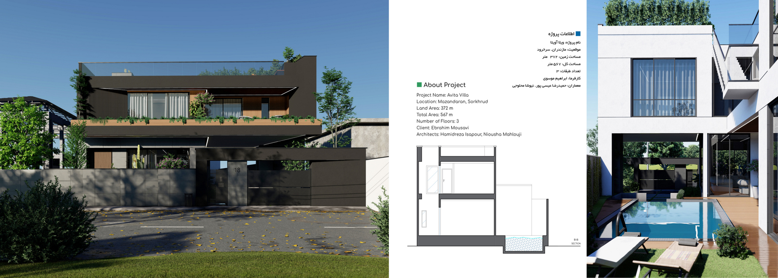 ویلا سلطان، جایی که حیاط مرکزی با استخر چشمنوازش قلب تپنده خانه است. پاسیوهای متنوع، نور و طبیعت را به هر گوشه فضا آوردهاند تا زندگی در اینجا، تجربهای بیانتها از آرامش و زیبایی باشد.