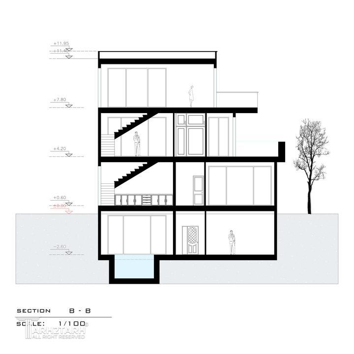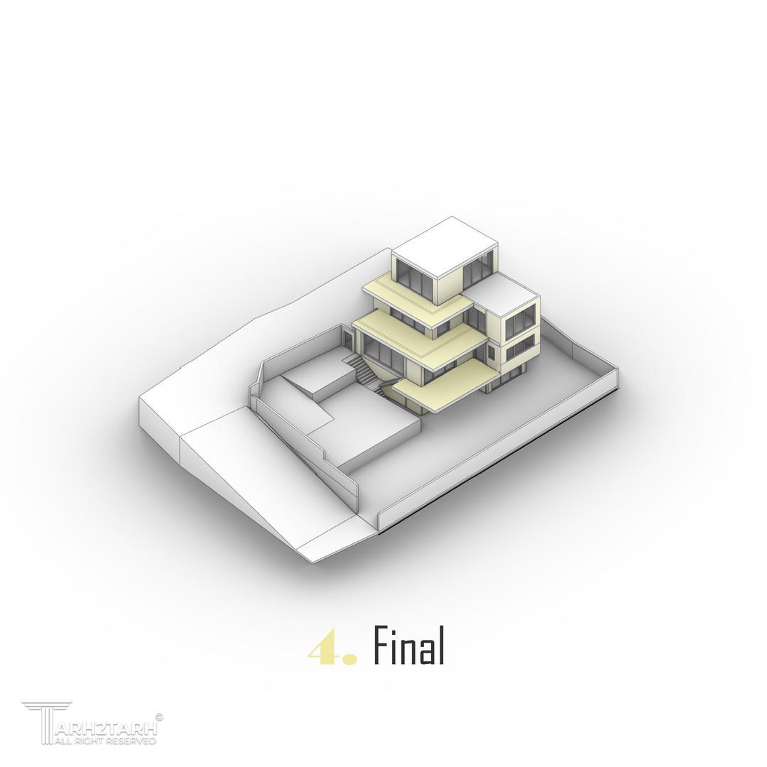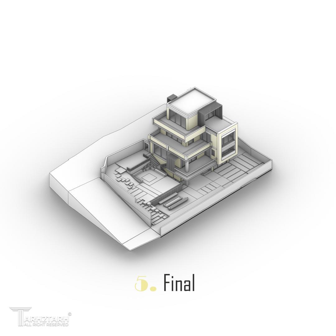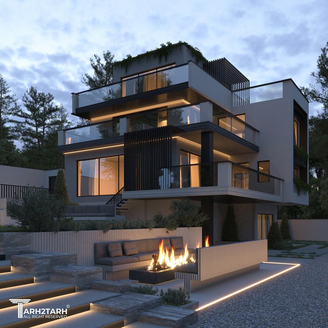 ویلای کرمی در باغهای رودهن، با هدف برقراری تعادل میان انسان و طبیعت طراحی شده است. بنا با قرارگیری در ارتفاع، بدون تسلط بر اطراف، با فروتنی در منظره حل میشود. سازماندهی فضاها بر پایهی احترام به حریم مجاور و فریمکردن مناظر البرز است؛ معماریای آرام، متفکر و همزیست با محیط طبیعی.