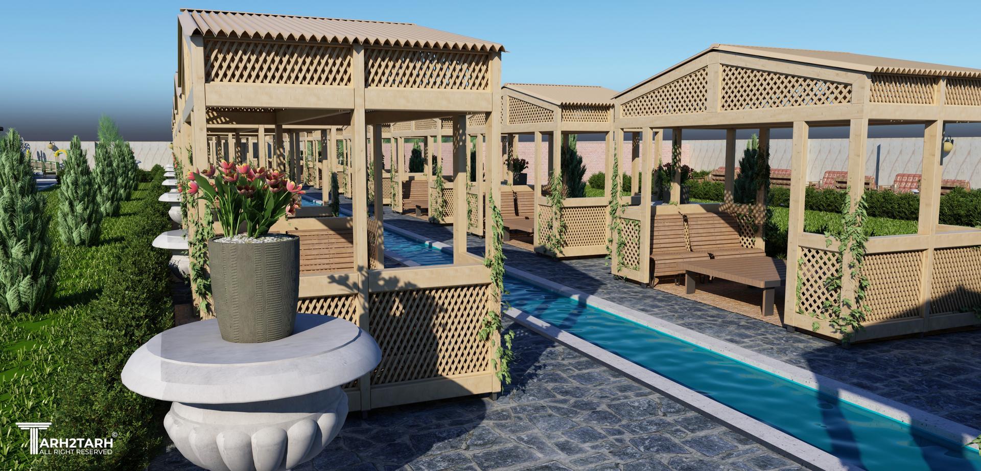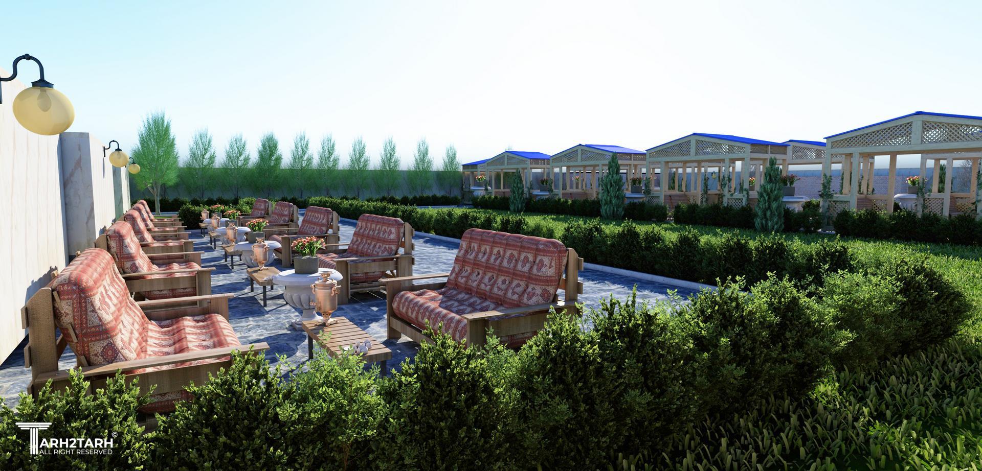 طراحی رستوران باغ که شامل زمین بازی وسقره خانه سنتی و....