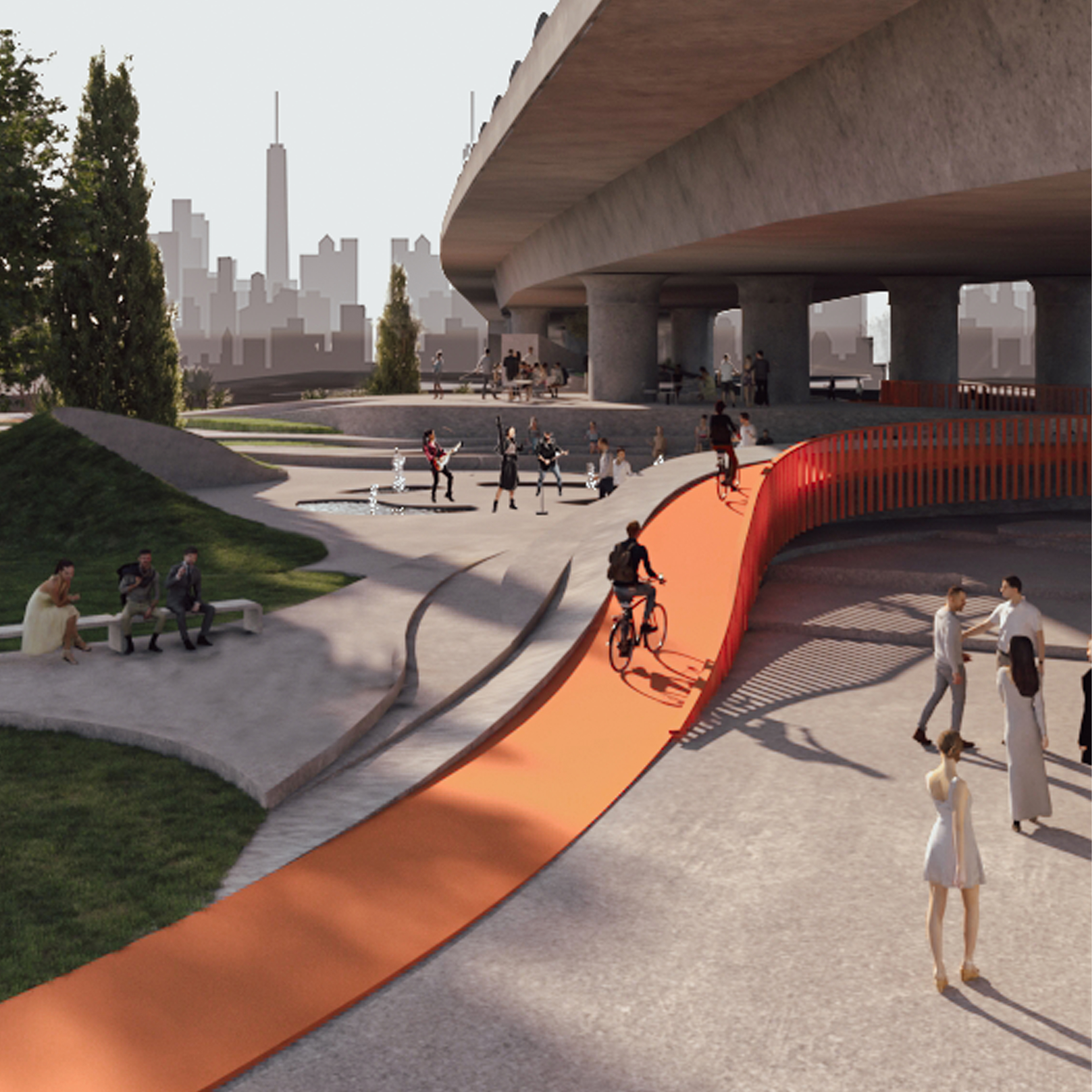 پروژه بازطراحی میدان و زیرپل احسان شیراز با هدف بازگرداندن میدان به مردم و پیوند دوباره آن با طبیعت و زندگی شهری شکل گرفت. با حذف خیابان پیرامونی، میدان به فضایی سبز و پیوسته بدل شد. الهامگرفته از کوه دراک، فضاهایی سیال و تعاملی با کارکردهای فرهنگی، ورزشی و هنری ایجاد شدهاند که انسان، طبیعت و خاطره را در گفتوگویی پویا پیوند میدهند.