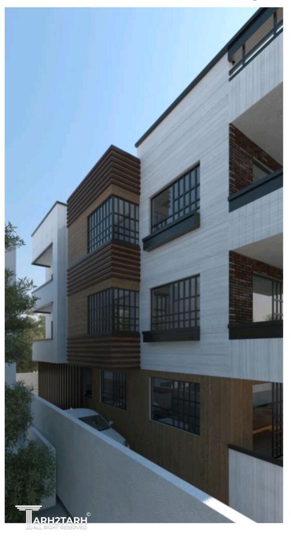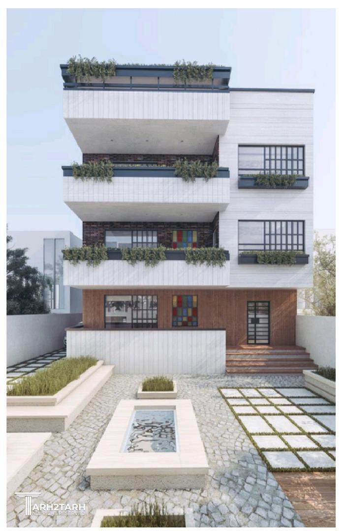 «پروژه شامل طراحی نمای مدرن با حجمهای پیشآمده، کاربری مسکونی، نورگیری گسترده، تراسهای سبز و محوطهای با بافت سنگفرش است.»