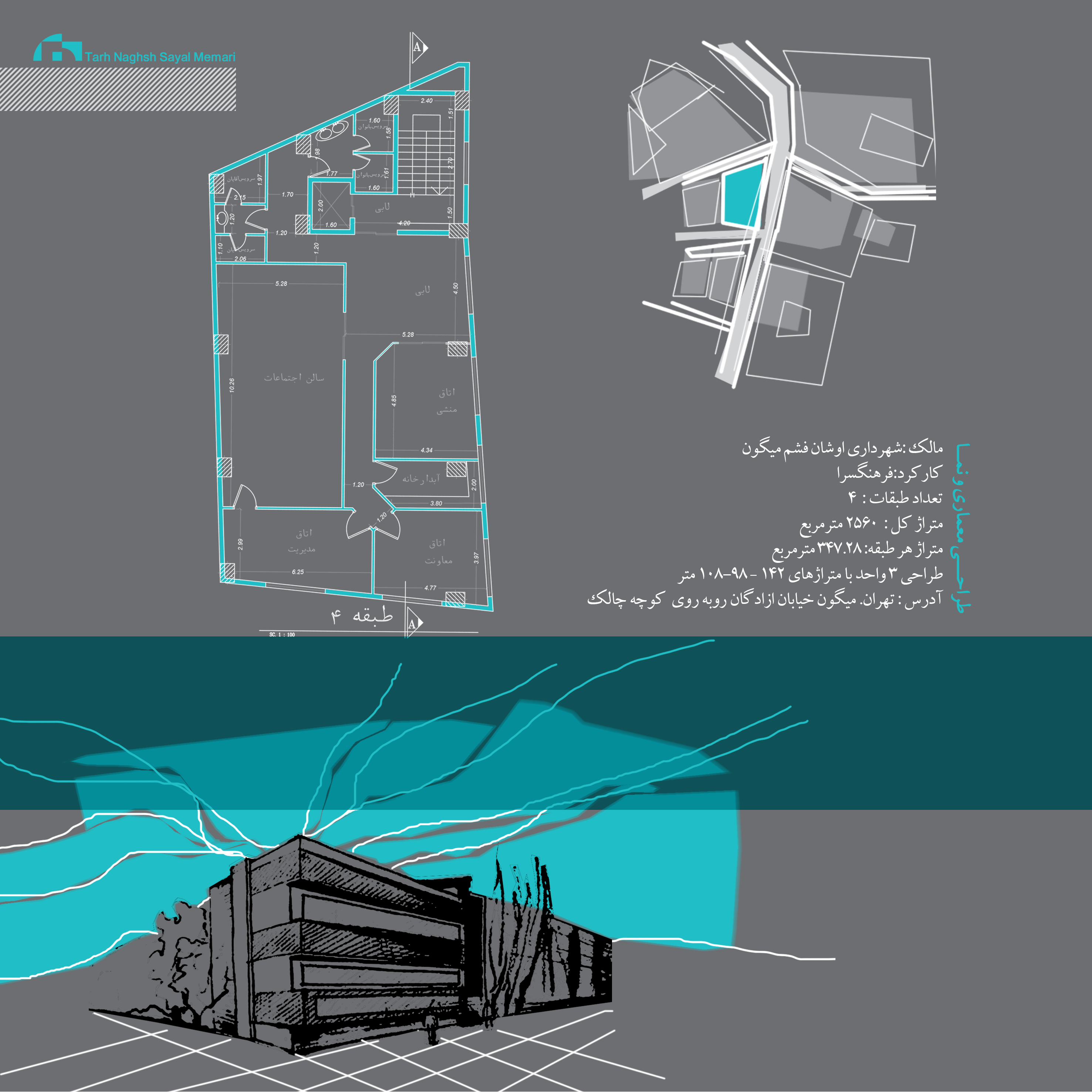 طراحی سه واحد چهار طبقه با متراژ کل 2560