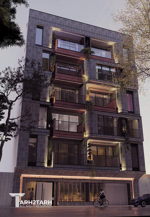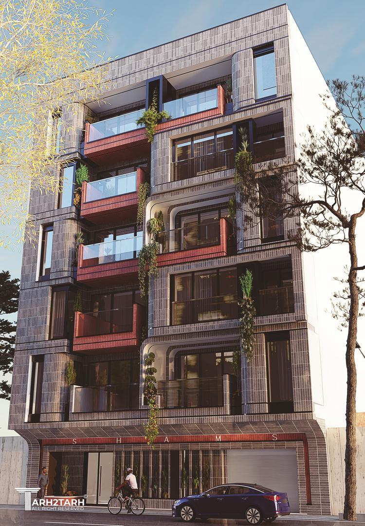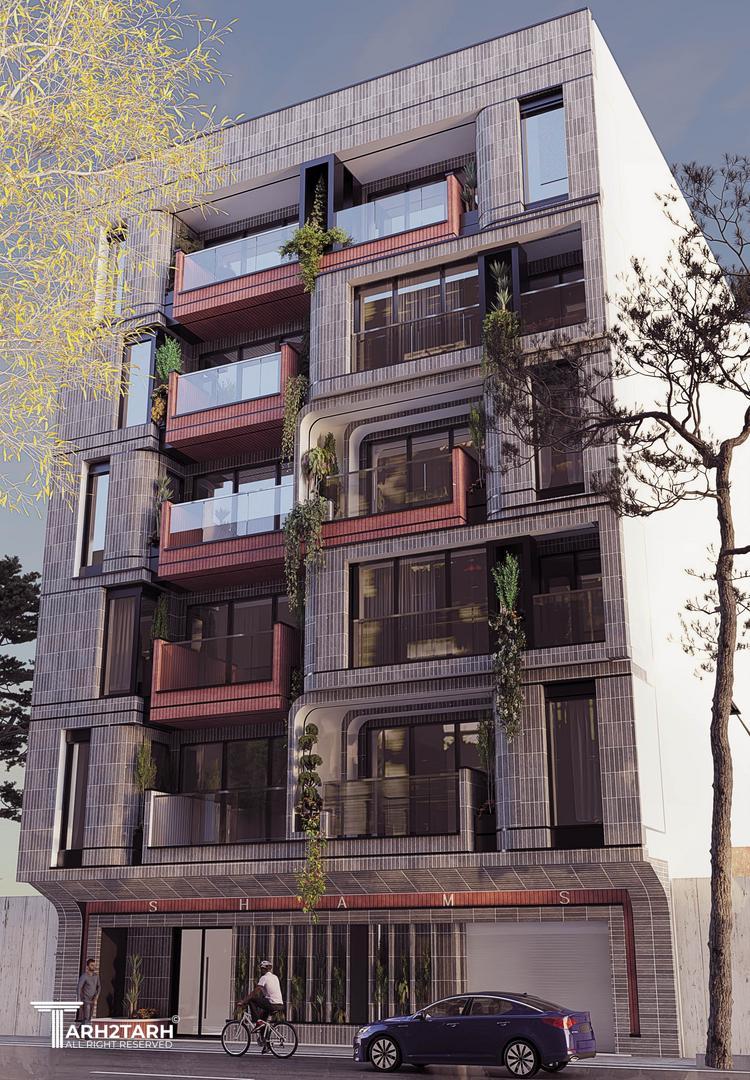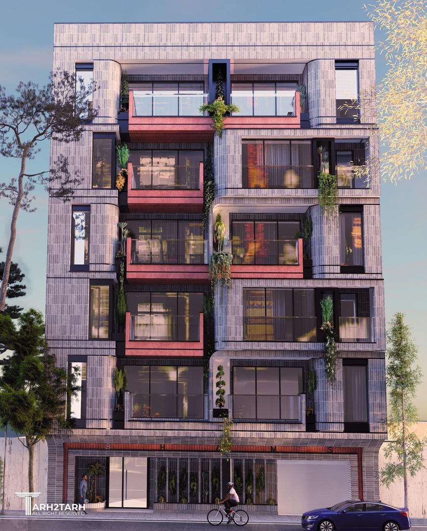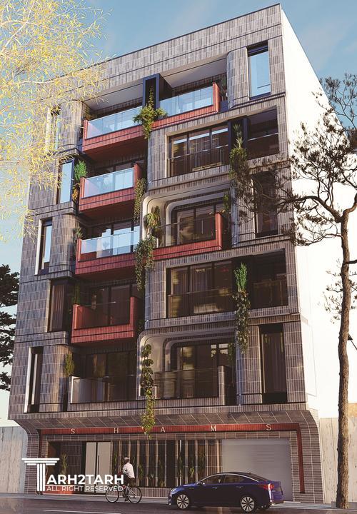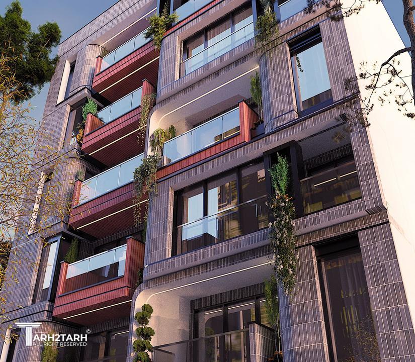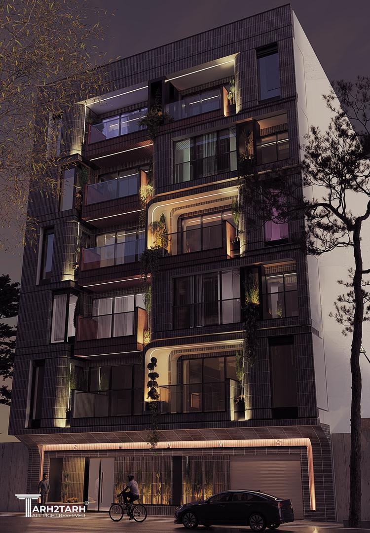 بدون ایجاد کنسول های بالای 1.5 متر تلاش داشتیم القا کنیم که عمق تراس ها با ابعاد بیشتری به نظر برسن و بهره مندی از اجر به عنوان متریال شایسته در معماری ایرانی و چالش نما به دلیل دو واحده بودن کمی سخت بود که با ایجاد فلاور باکس هایی که هم نقش جدا کردن واحد هارو بازی کردن و هم تاسیسات رو در خودشون جا بدن