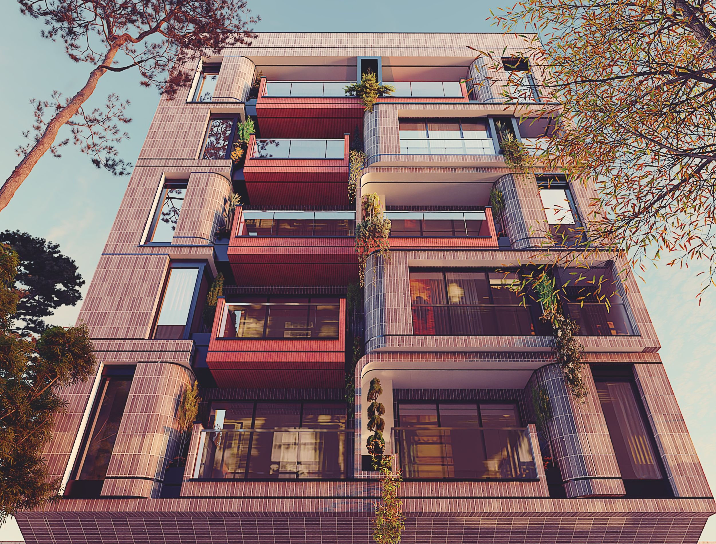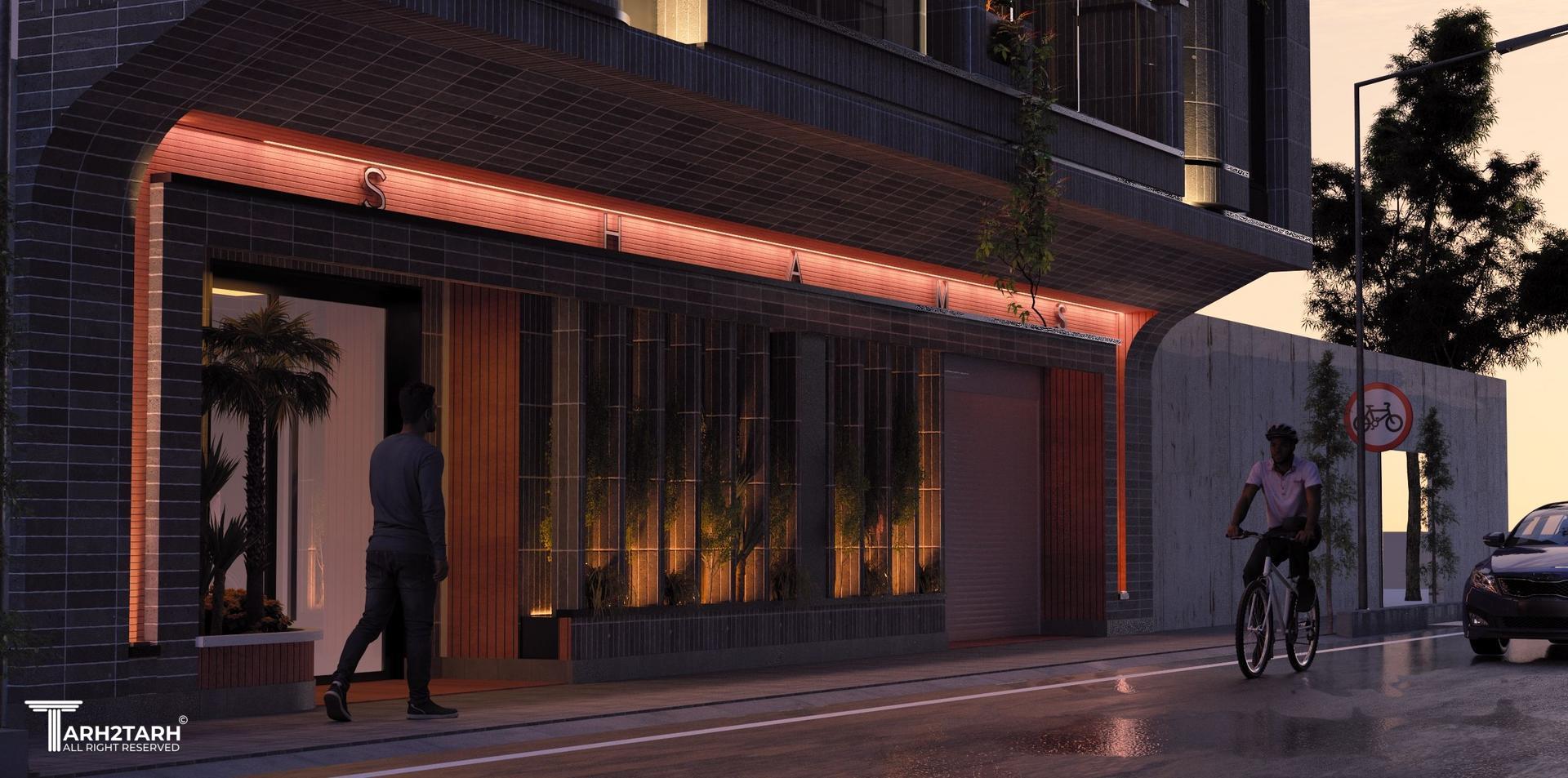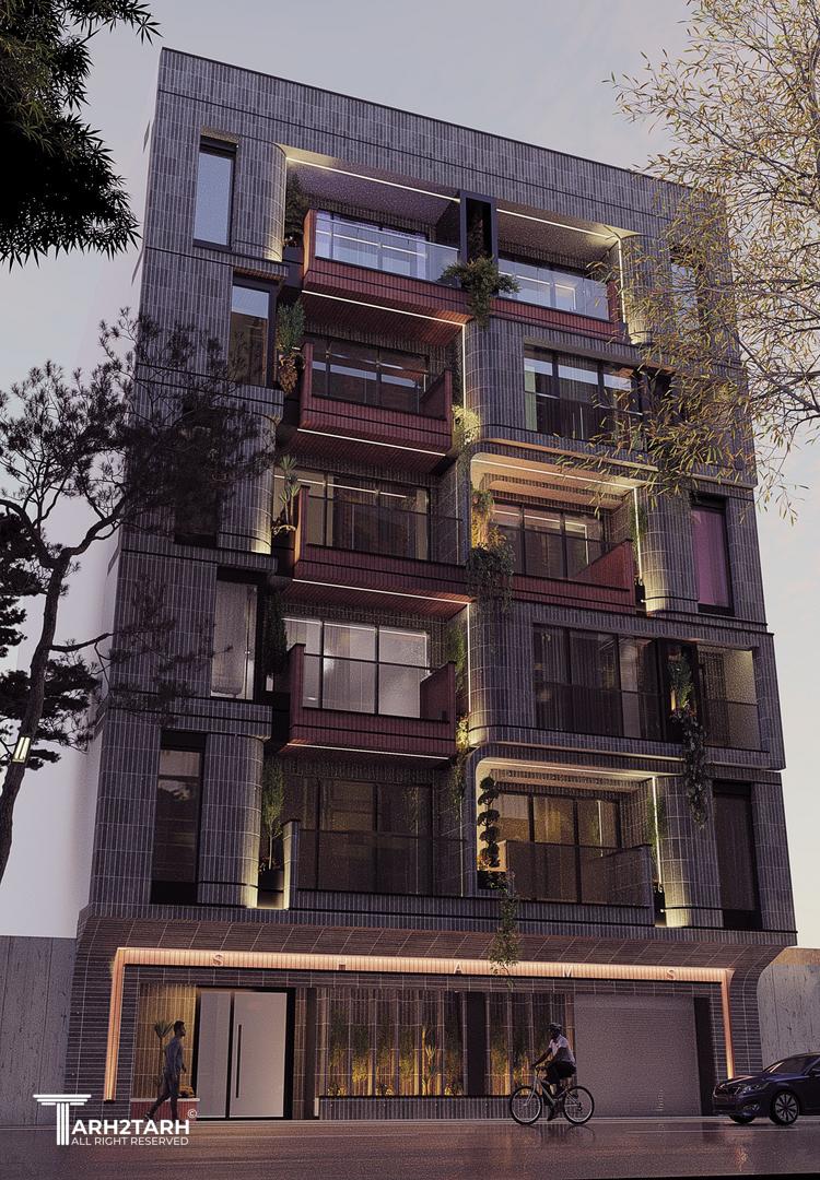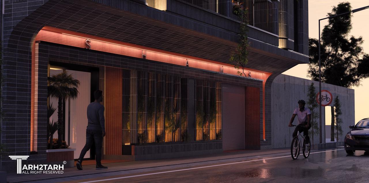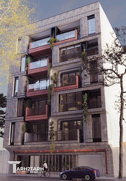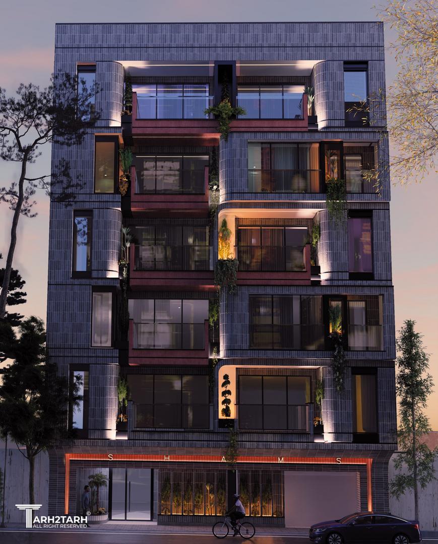 بدون ایجاد کنسول های بالای 1.5 متر تلاش داشتیم القا کنیم که عمق تراس ها با ابعاد بیشتری به نظر برسن و بهره مندی از اجر به عنوان متریال شایسته در معماری ایرانی و چالش نما به دلیل دو واحده بودن کمی سخت بود که با ایجاد فلاور باکس هایی که هم نقش جدا کردن واحد هارو بازی کردن و هم تاسیسات رو در خودشون جا بدن
