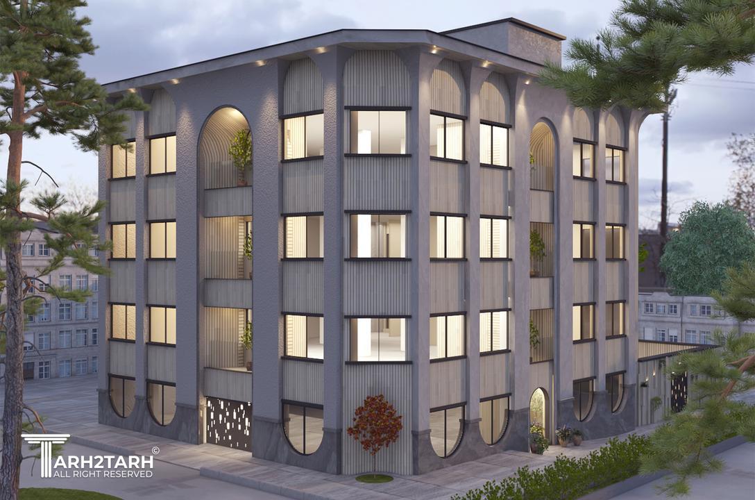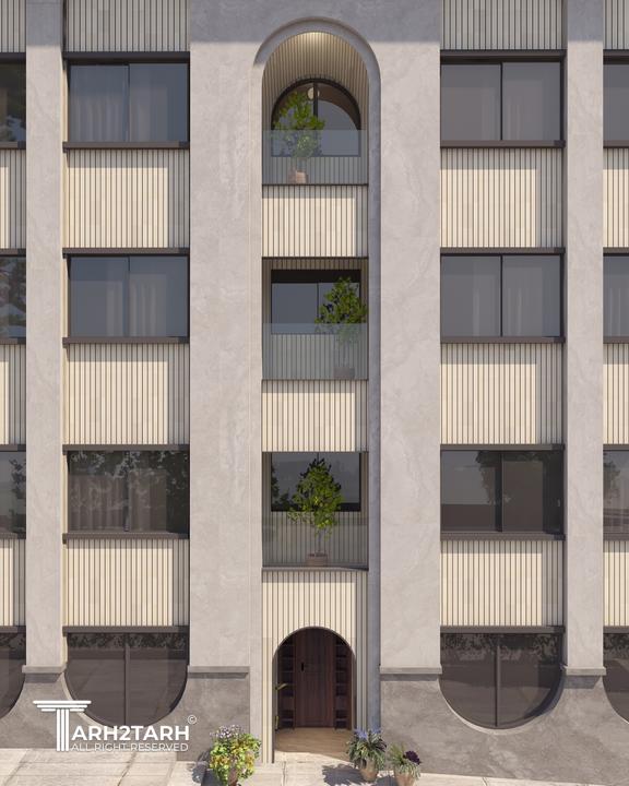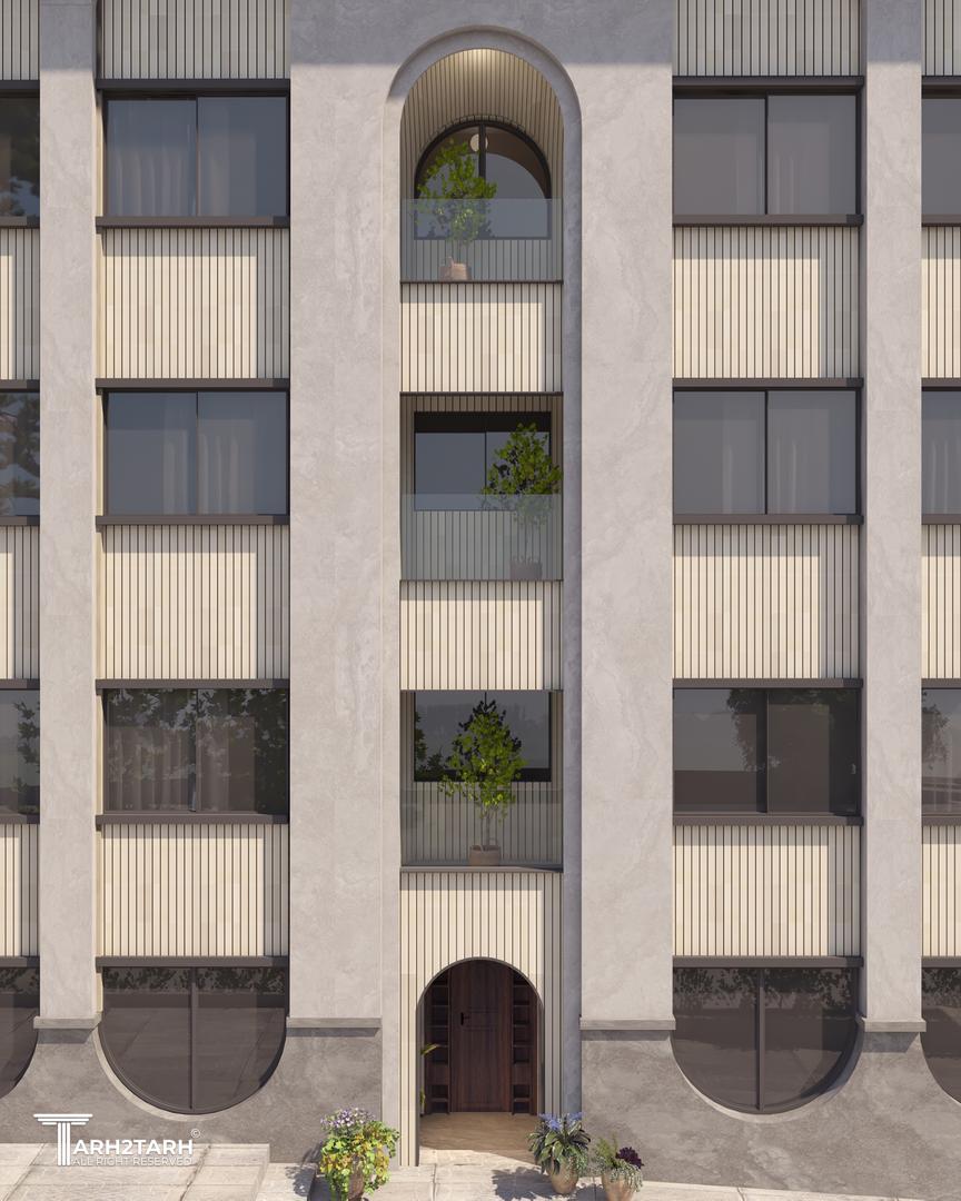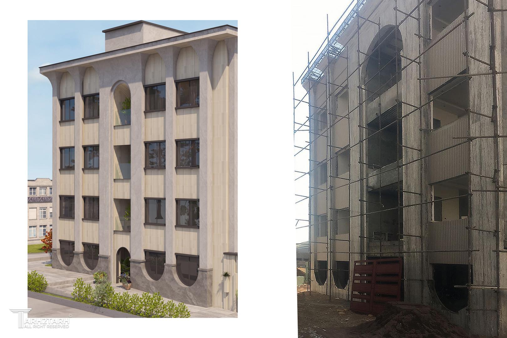 در این طرح، ایدهی اصلی نما از تعدد درختان چنار منطقه و رشد پاجوشهای آنها گرفته شده است. حضور چنارها الهامبخش ایجاد ریتمی منظم، فرمی نرم و پویا در کل نما شده است. صفحهی بیرونزده در بالای بنا و ستونهایی که آن را نگه داشتهاند ــ با الهام از سایه، شاخهها و پرسپکتیو ایجادشده توسط درخت ــ علاوه بر افزایش ارتفاع دیداری، حس امنیت را تقویت میکنند. در بخش پایین بنا، اتصال و پیوستگی ستونها یادآور پاجوشهای چنار است و فضایی کاربردی برای نشستن (پیرنشین) ایجاد میکند که از عناصر معماری اصیل ایرانی به شمار میرود. تنوع عمقی در سطوح مختلف نما نیز به پویایی و خوانایی بنا میافزاید و ورودی بنا بهصورت شاخص طراحی شده است. در انتخاب متریال، استفاده از آجر بهعنوان مصالح سنتی معماری ایران، سنگ بهعنوان عنصر بومآورد منطقه، و کاشی بهعنوان نمادی از هنر ایرانی، هویت بنا را تقویت میکند. ترکیب سنگ و کاشی در کنار گرهها و الگوهای هندسی نیز رویکردی معاصر با پشتوانهای تاریخی ایجاد کرده است