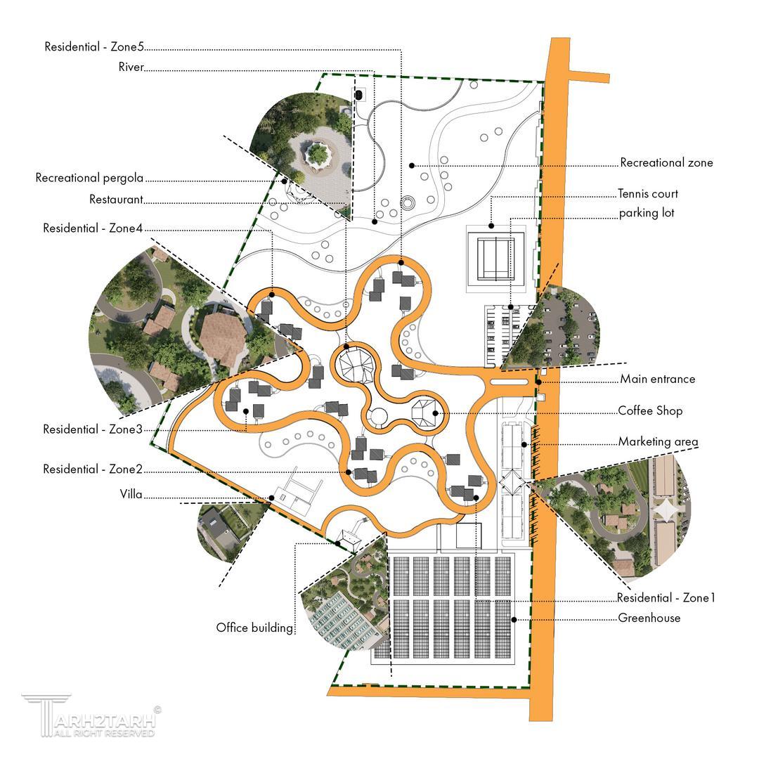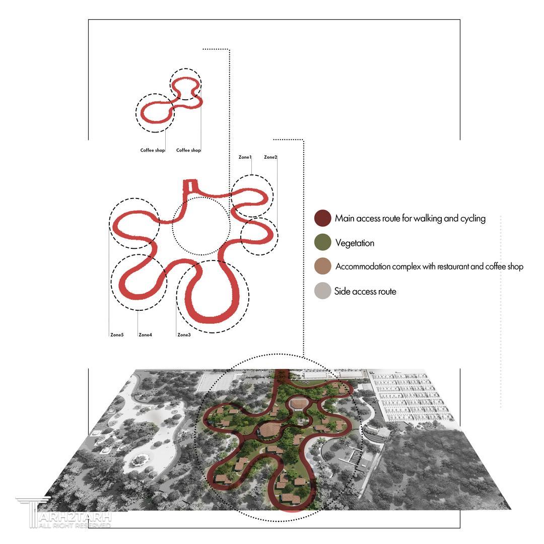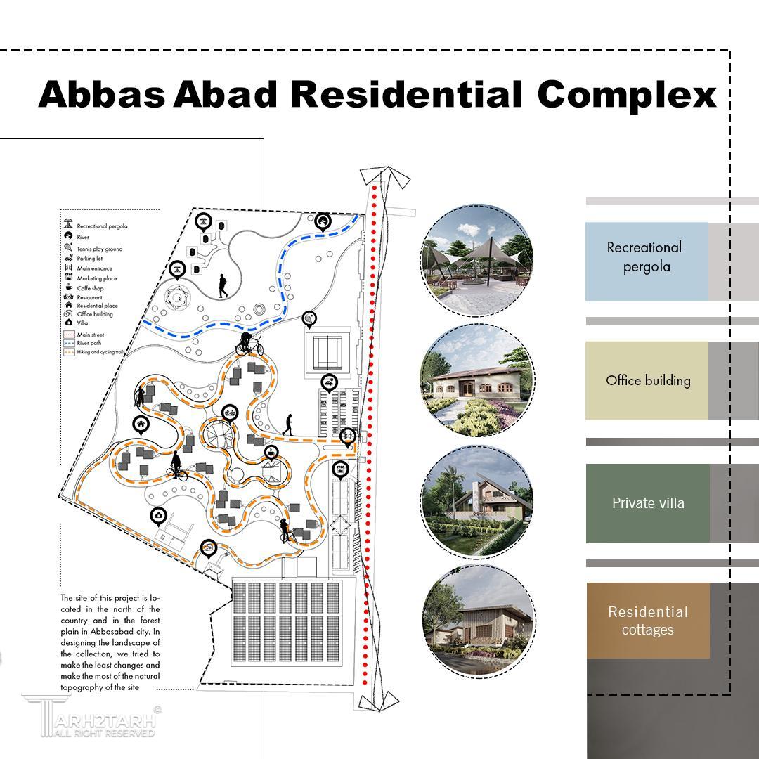 این پروژه به مساحت 10 هزار متر واقع در استان مازندران و منطقه عباس آباد می باشد . فضاهای پیش بینی شده در مجموعه شامل فضاهای اقامتی ، و تفریحی ، پیست دوچرخه سواری ، پارکینگ اتومبیل ، رستوران ، کافی شاپ ، گلخانه ، ویلای شخصی کارفرما ، غرفه های فروش صنایع دستی و ......