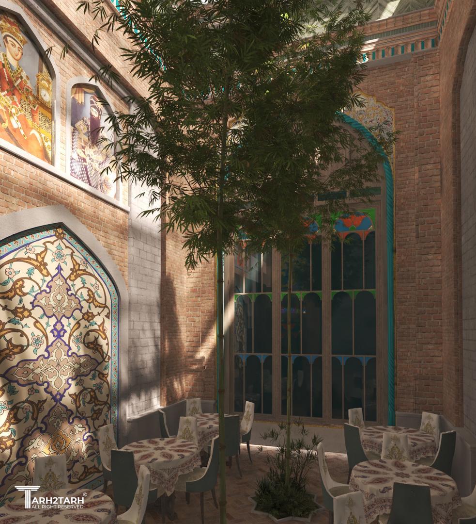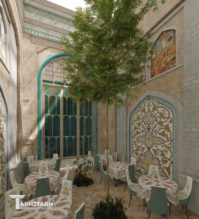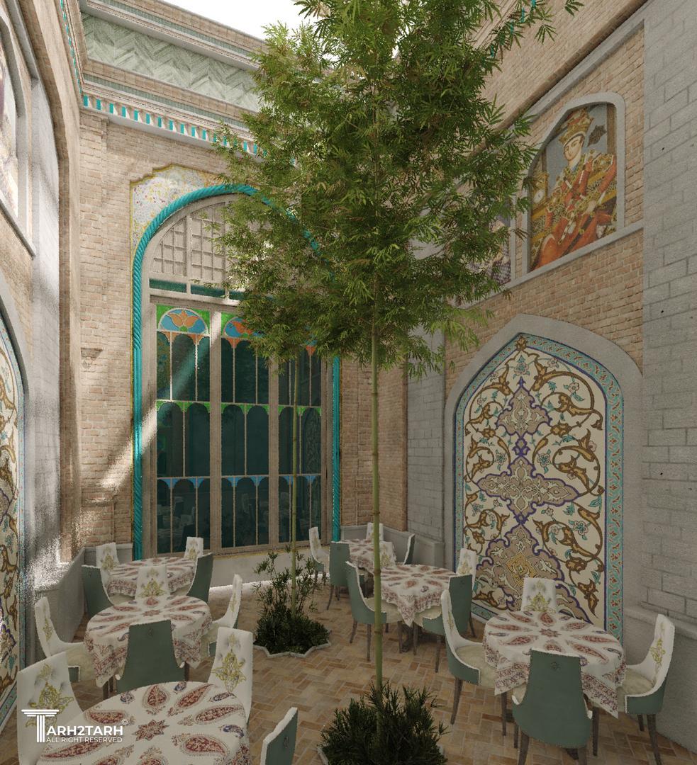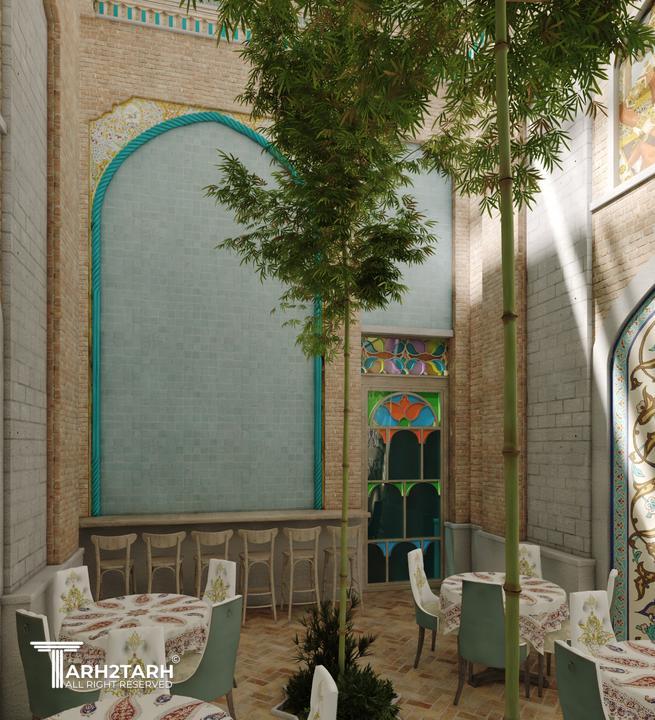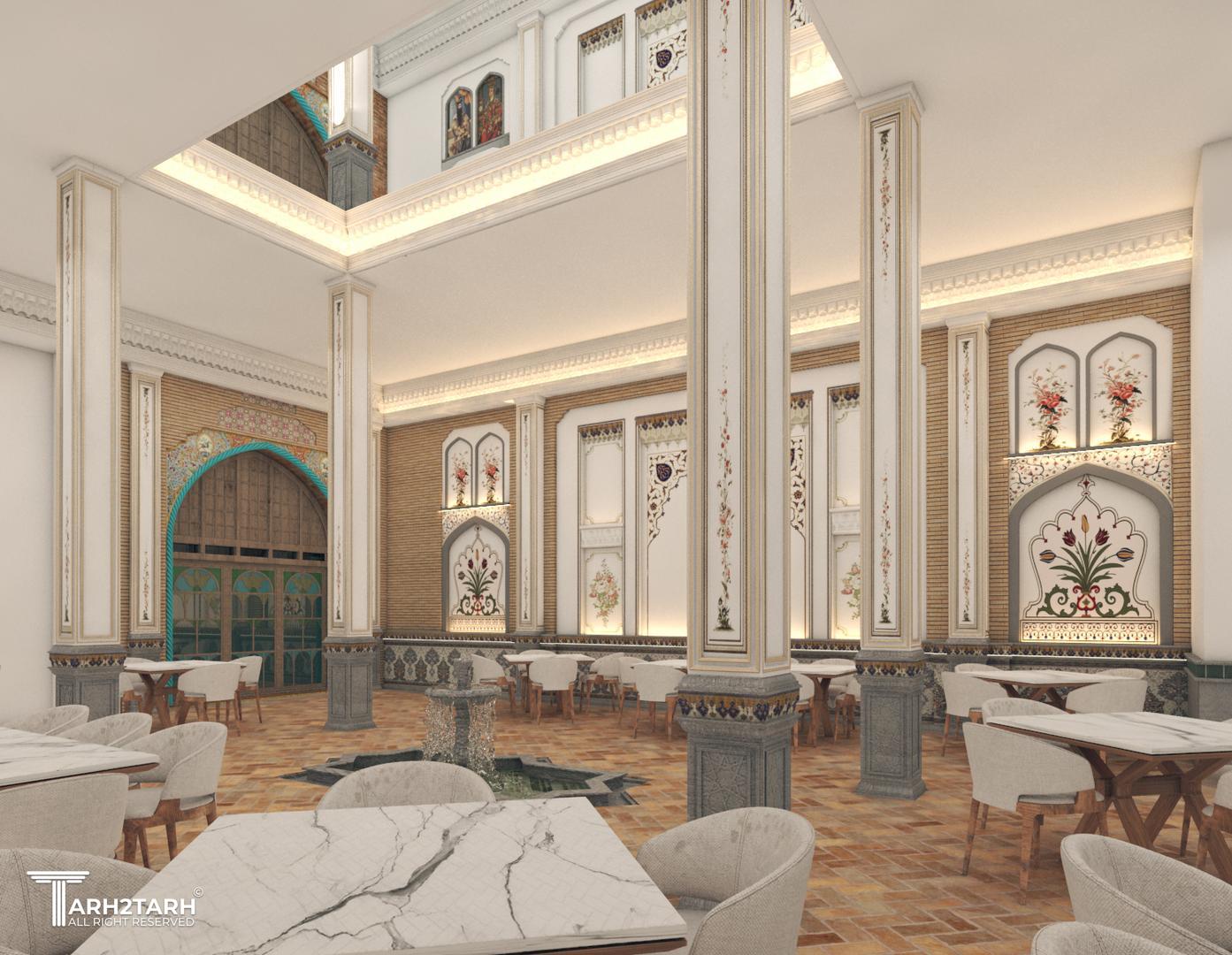 طراحی رستوران سنتی داخل بازار تبریز در دو طبقه که در کنار دروازه تاریخی شهر قرار گرفته و در طراحی با دروازه قدیمی تلفیق شده است