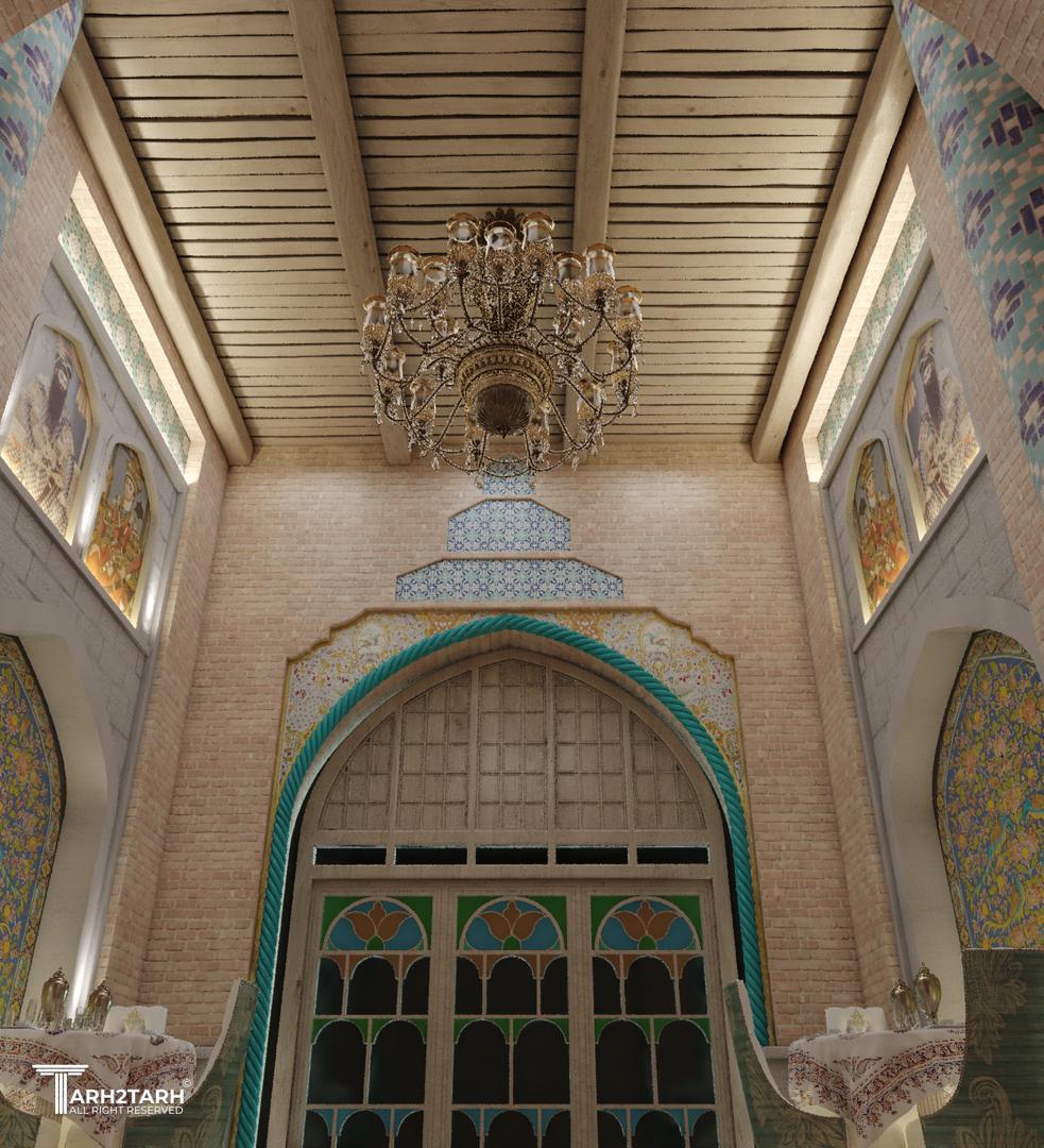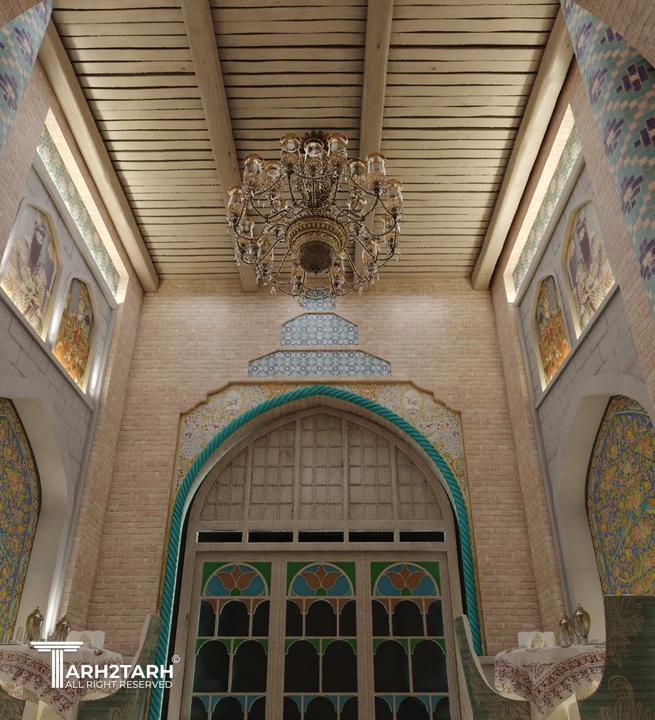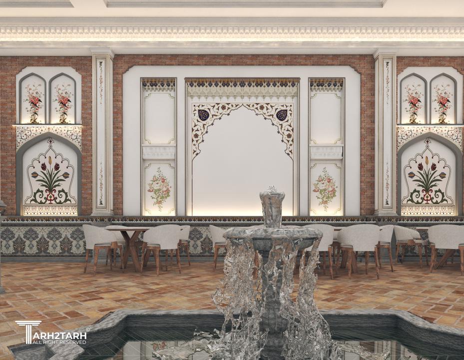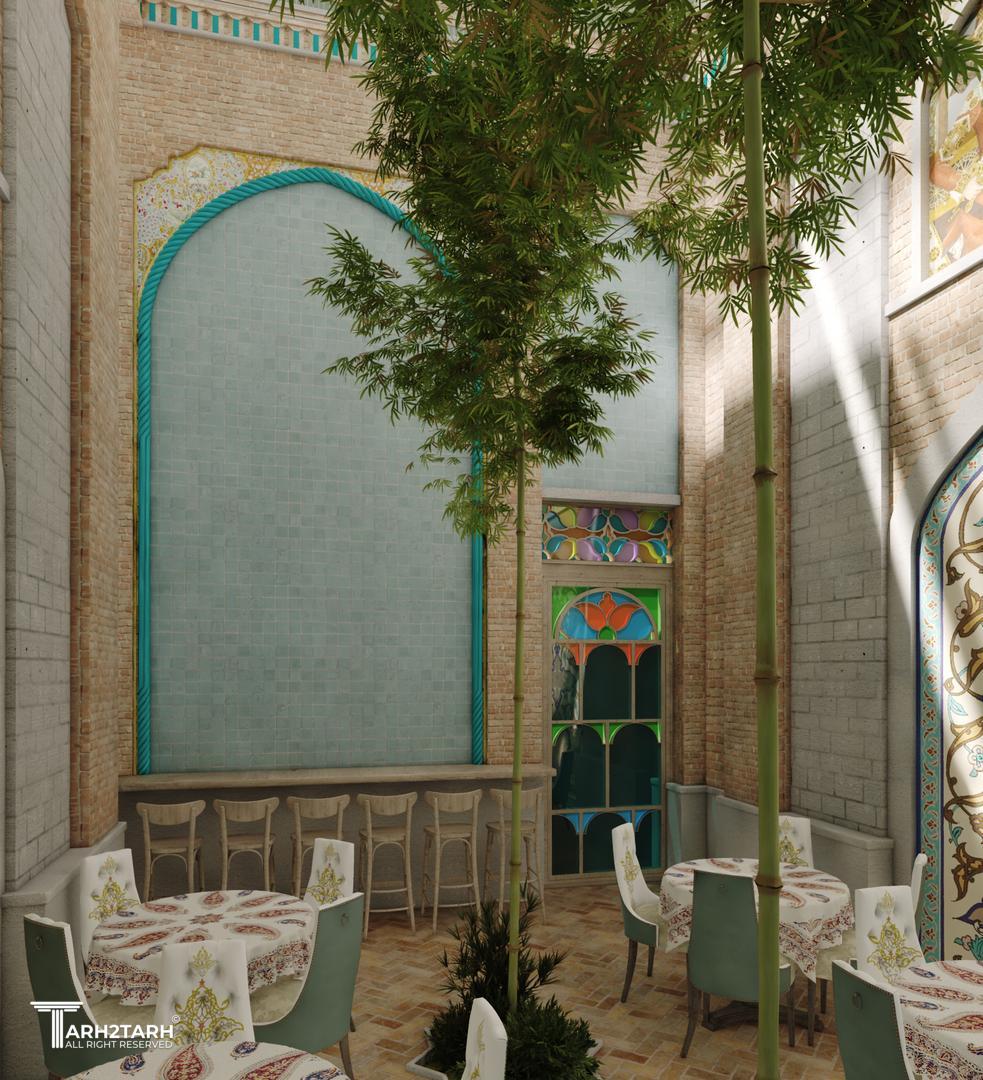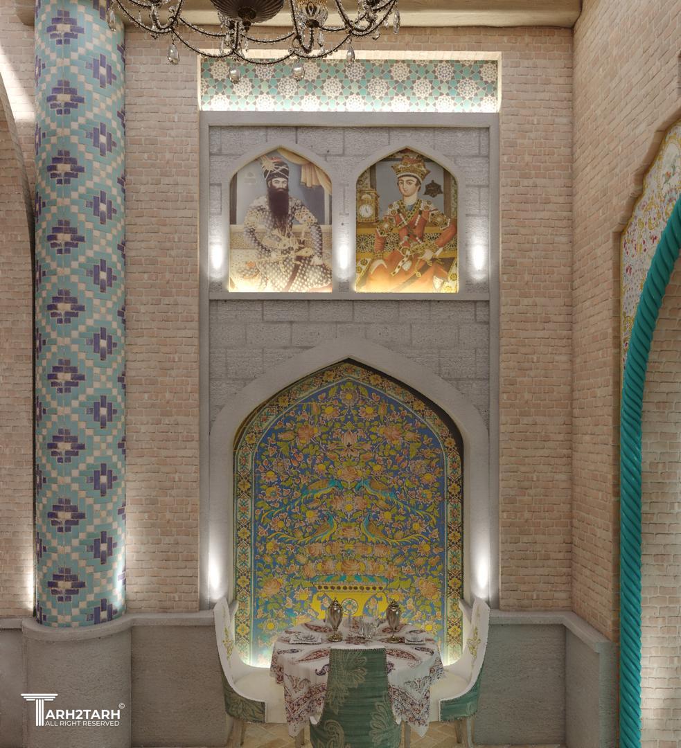 طراحی رستوران سنتی داخل بازار تبریز در دو طبقه که در کنار دروازه تاریخی شهر قرار گرفته و در طراحی با دروازه قدیمی تلفیق شده است