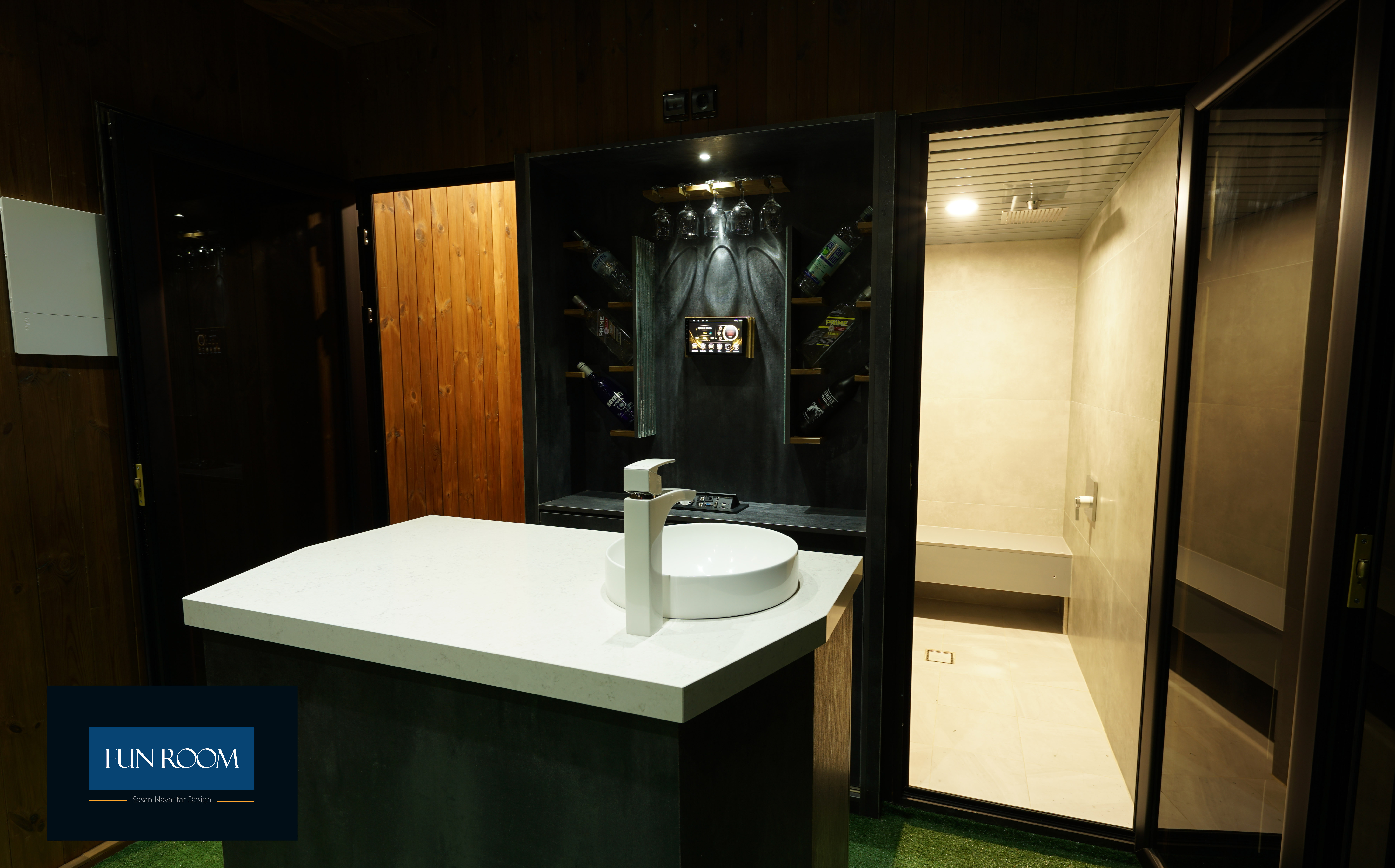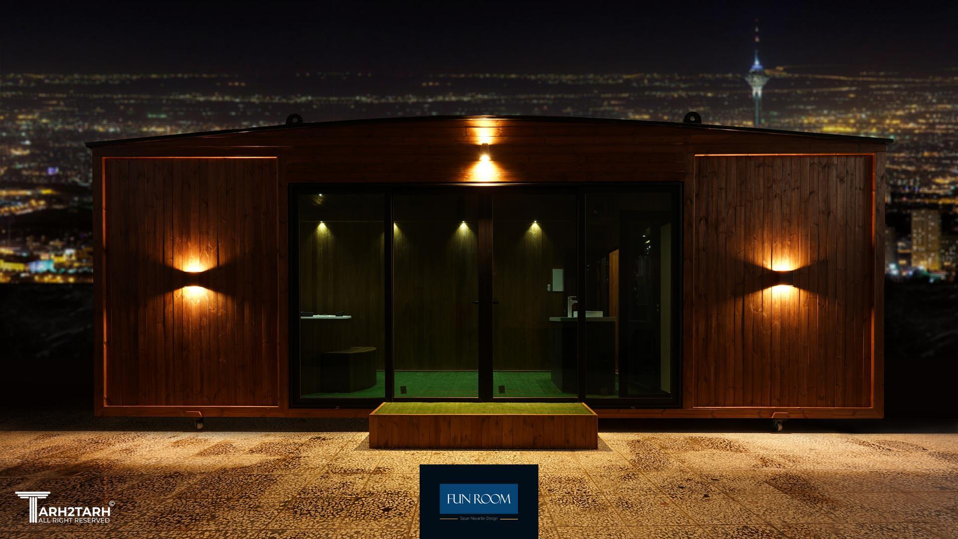 فان روم" محصول پیش ساخته و قابل حمل مناسب برای روف گاردن ، باغ ها و ویلاها با امکانات و طراحی منحصر به فرد و لوکس امکانات این محصول : جکوزی شش نفره ، سونای بخار و حمام ، سونای خشک ، با و جزیره ، یخچال ، سیستم صوتی و نورپردازی حرفه ای ، قابلیت نصب تلویزیون و اسپلیت
