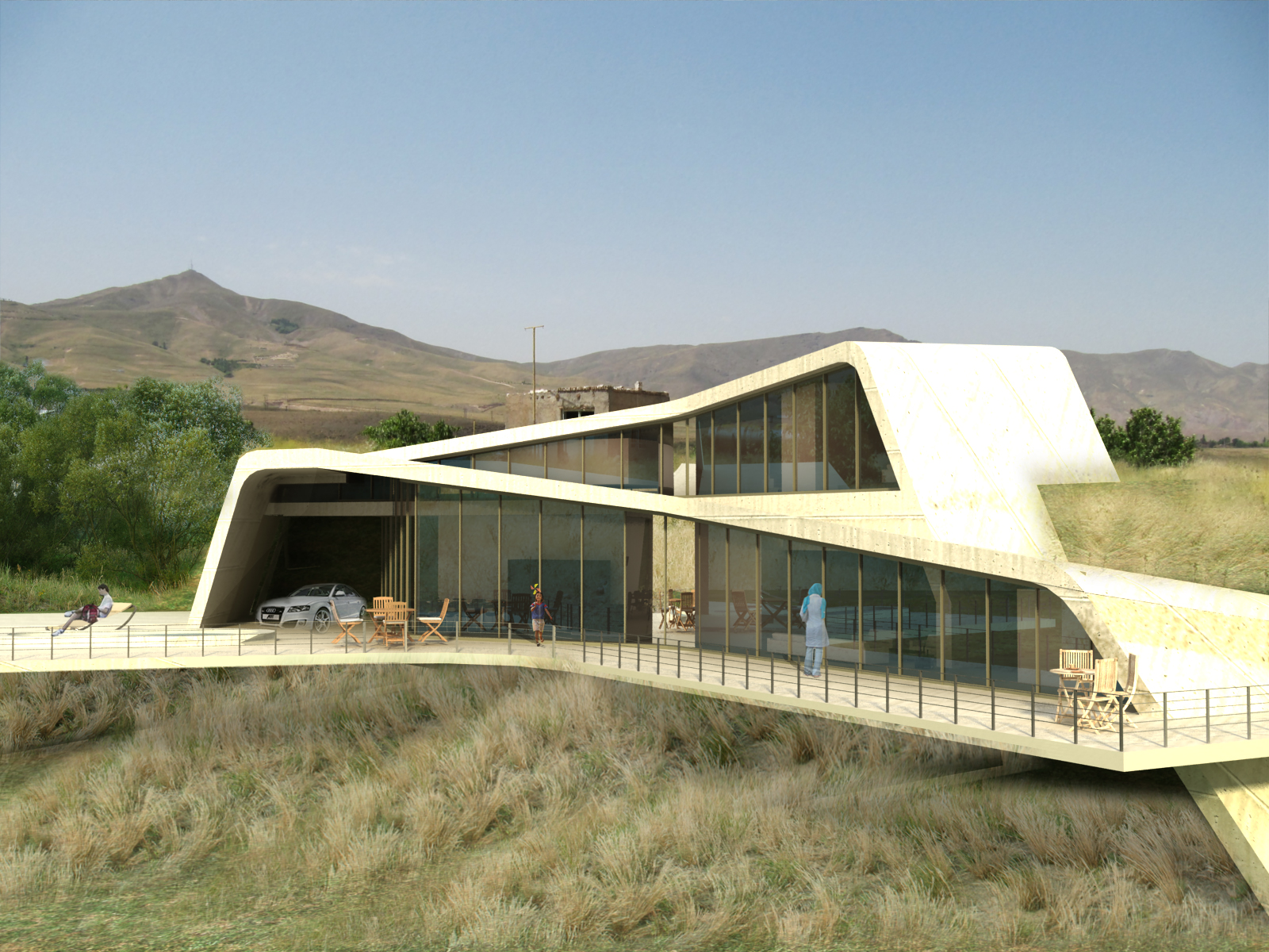 در این گزینه، پاسخ، یک فضای مدرن بود که به طور خاص تعریف شده طراحی شده است. سازهای که قابلیتهای فناوری را نمایش میدهد، ساخت و روح زندگی مدرن را با انعطافپذیری دنیای دیجیتال در محدوده ارتباطی فراهم میکند، نزدیک هستند. پوسته آزاد، هماهنگ با پیامدهای طبیعی سایت، با ارتفاع و فرود خود نزدیک به محیط کوهستانی، ماهیت مواج خود را با دریاچه خروشان سد نشان میدهد. فرمی که با آنچه در این دوران دیده و شنیدهایم نزدیک باشد و شاید در ایجاد محیط طبیعی، آرام و استراحتگاهها، حس انزوا از دنیای سریع روزانه که شاید کمی ناامیدکننده باشد را نداشته باشد. این انعطافپذیری فرم در عملکرد فضا و حرکت گردش خون نیز برای ارائه یک سطح (تراس) پیوسته در پروژه انجام شده است تا منحصر به فردترین منظره منطقه را ایجاد کند. علاوه بر کاهش جرم و جنایت و مصالح و افزودن حداکثر فضا، که باعث وضوح و حس سبک فضا میشود، توانایی پاسخگویی به روشهای مختلف، برای بهرهبرداری از فضا را فراهم میکند. این طرح شامل دو گزینه برای شکستن فرم خطی و نحوه اتصال آن به حجم یکپارچه است، به طوری که سطح پوسته در دو سطح ارتفاعی مختلف به خوبی پوشانده شده است، منسجم و غیر قابل جدا شدن به گونهای که یک حجم وجود دارد. از خاک برخاسته است به طوری که روی آن قرار میگیرد.