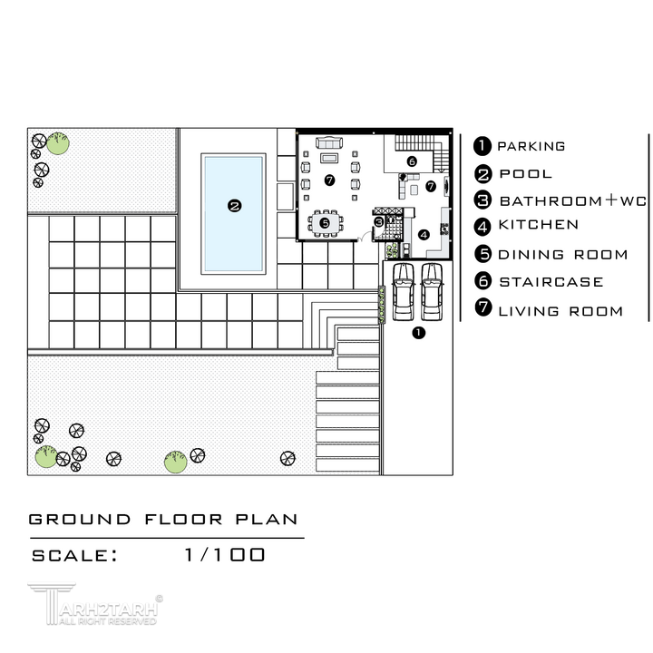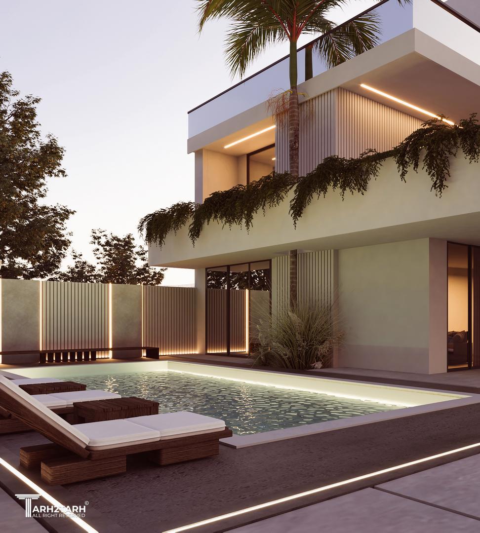 ویلای بلوچیان در منطقه نیمهکوهستانی رودهن با رویکردی مینیمال و معاصر طراحی شده است. بنا با چرخشی هدفمند از شلوغی شهر فاصله گرفته و به طبیعت گشوده شده است. استخر، تراسهای باز و پنجرههای سراسری مرز درون و بیرون را محو کردهاند. پروژه تلاشی است برای خلق سکونتی آرام، متعادل و همگفتوگو با طبیعت.