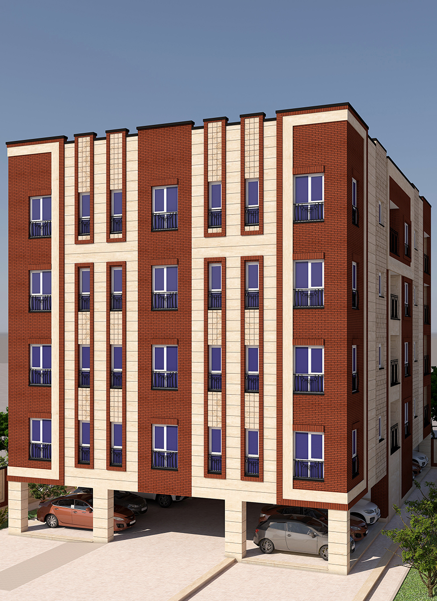 پروژه در زمینی به مساحت 735 متر و با سطح اشغال 50% در 4 طبقه 3 واحدی طراحی شده است