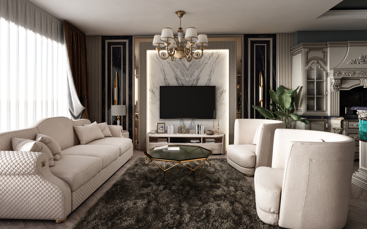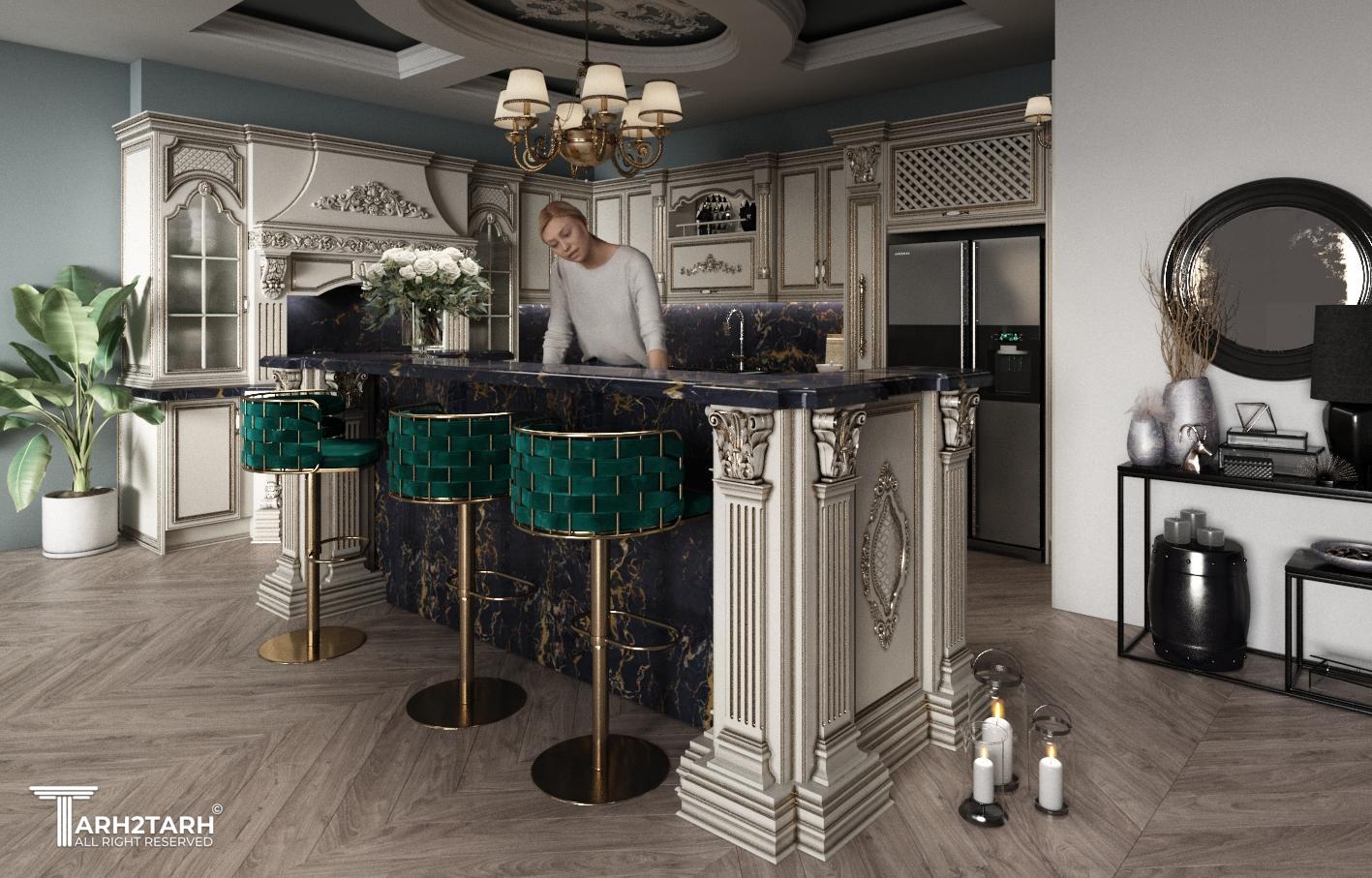 کار فرمای پروژه در طراحی این واحد مسکونی بیشترین هدف خود را به روی آشپزخانه و دکور دیوار تلویزیون معطوف کرده بود که با توجه به خواسته کارفرما و نیاز روز خانواده طراحی صورت گرفته است