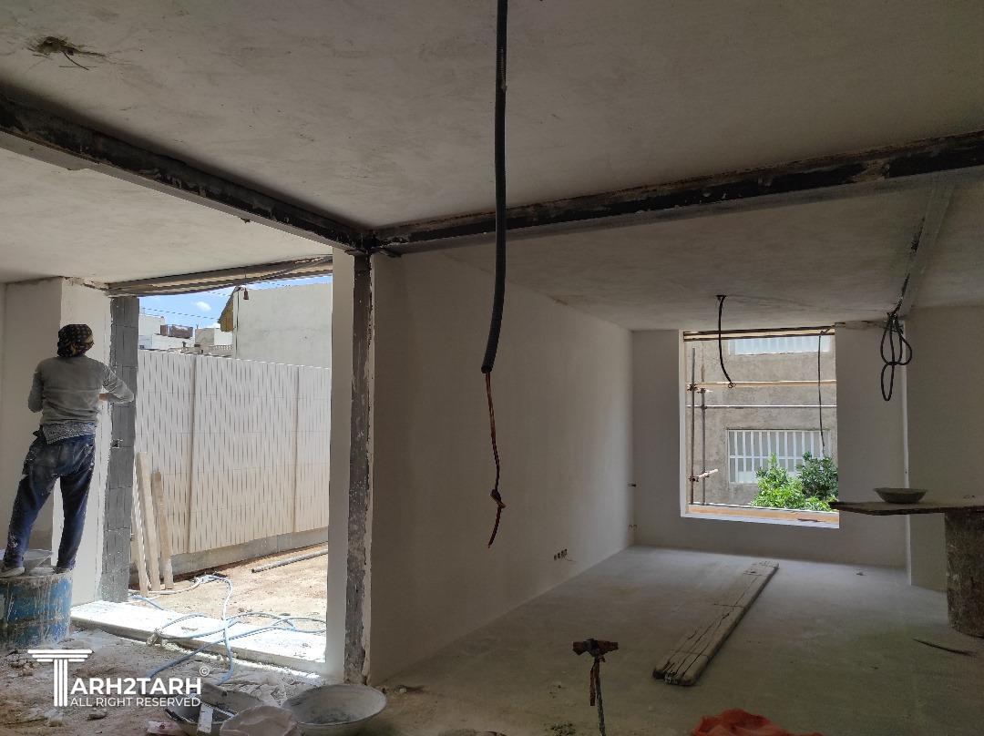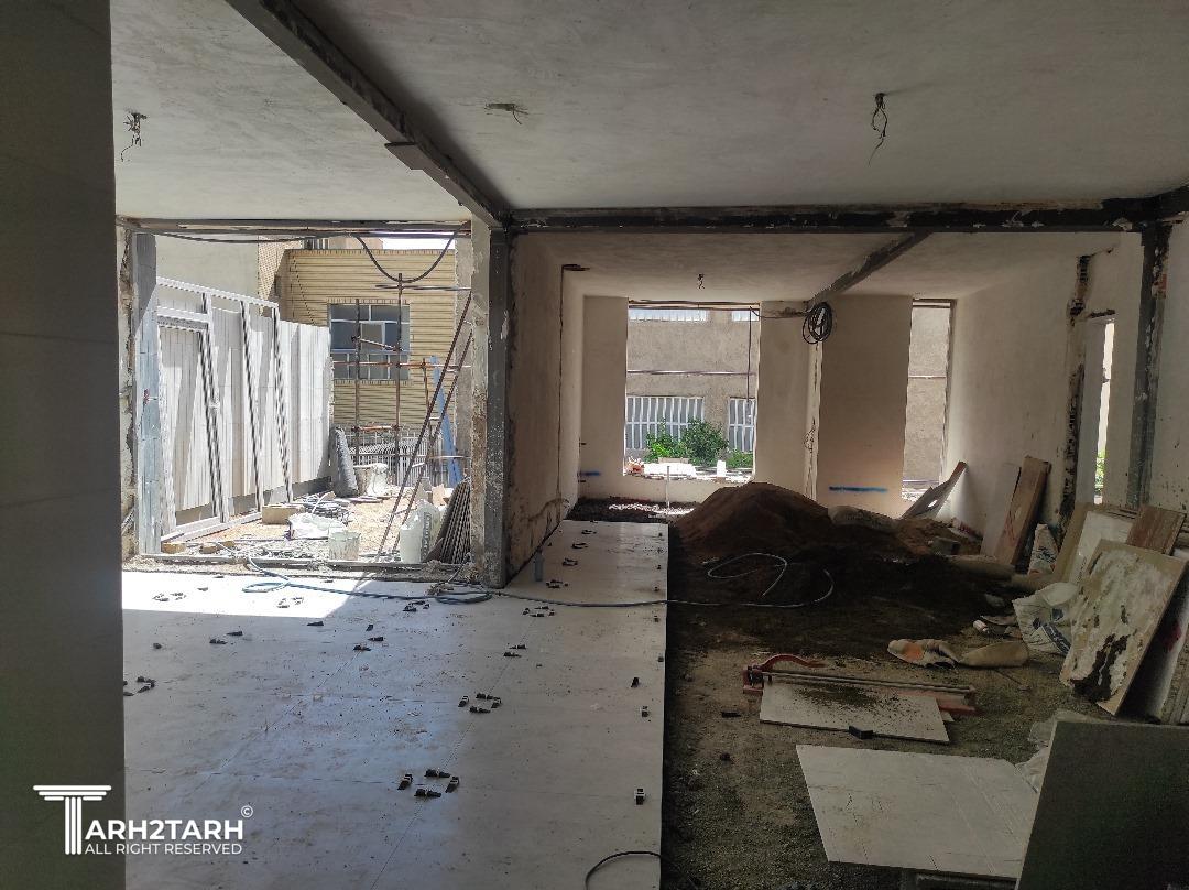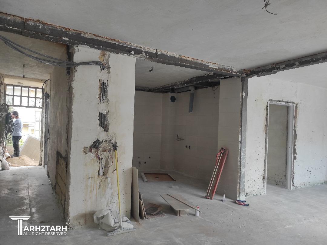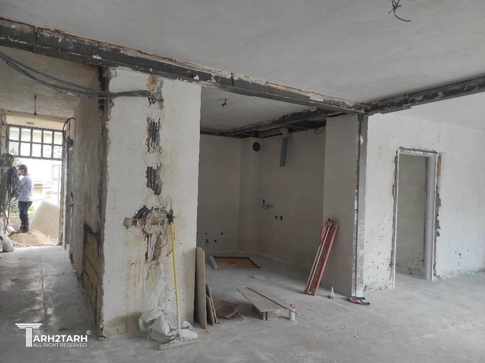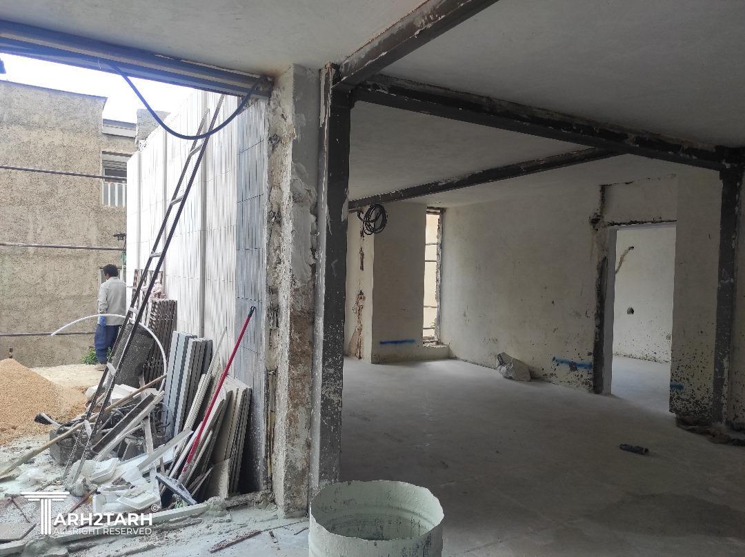 طراحی و اجرای کامل همراه با تخریب جرزهای 40 سانی، کاشت 13 ستون و 21 تیر بر اساس محاسبه مقاوم سازی