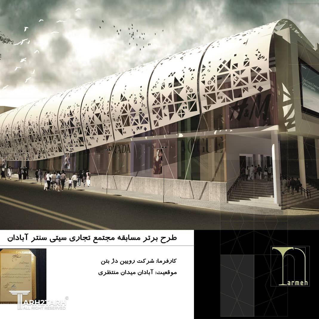 مسابقه دعوتی محدود از سوی شرکت رویین دژ بتن برگزار گردید. اسکلت پروژه موجود بوده و تکمیل پوسته و داخل بنا موضوع مسابقه بوده است .استفاده ار موتیفهای سنتی و معماری بومی -اقلیمی محوریت طراحی پروژه میباشد.طرح مذکور جزو پنج طرح برتر مسابقه محدود مجموعه سیتی سنتر آبادان .