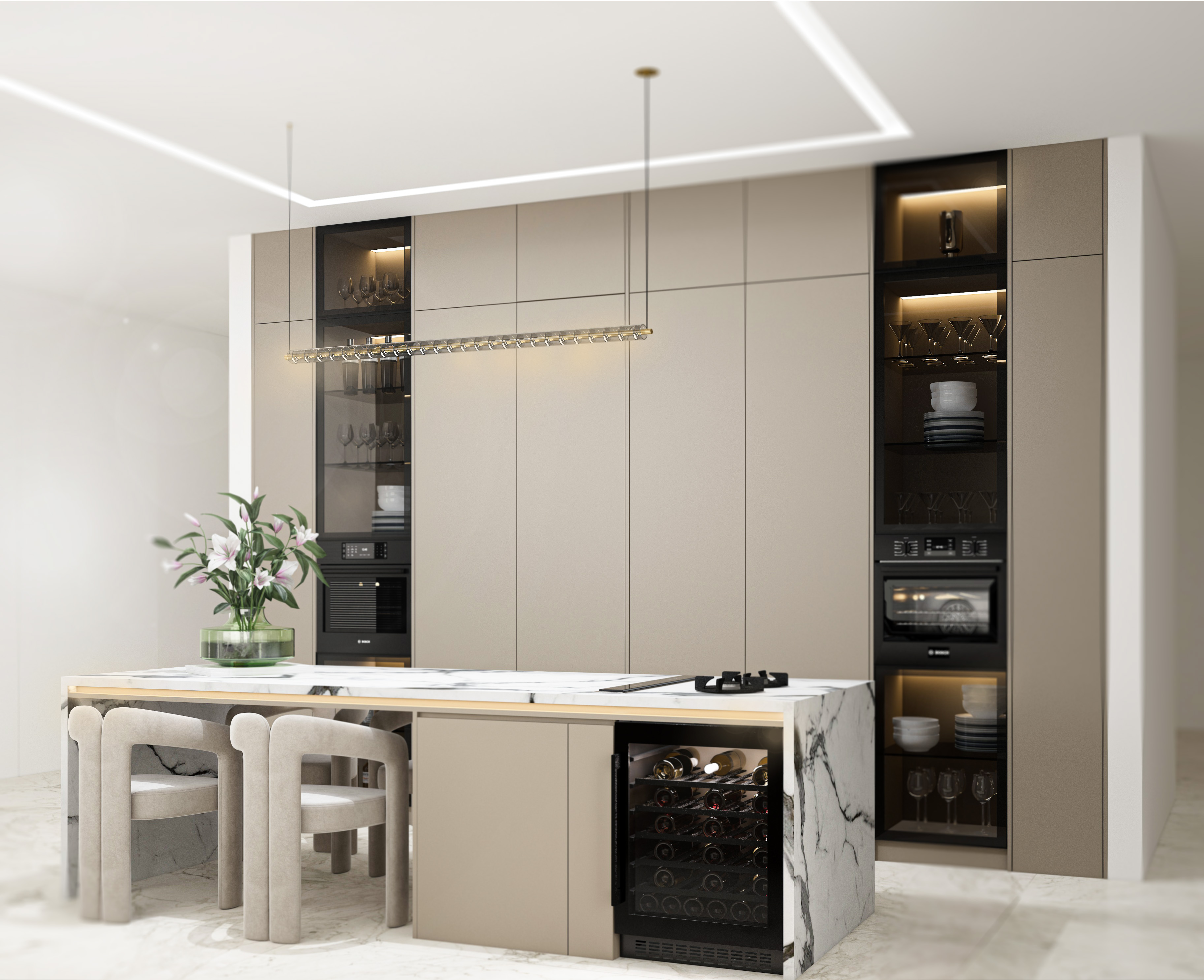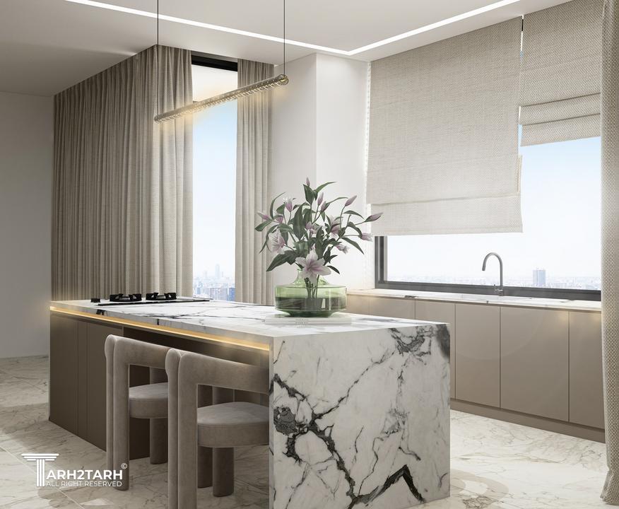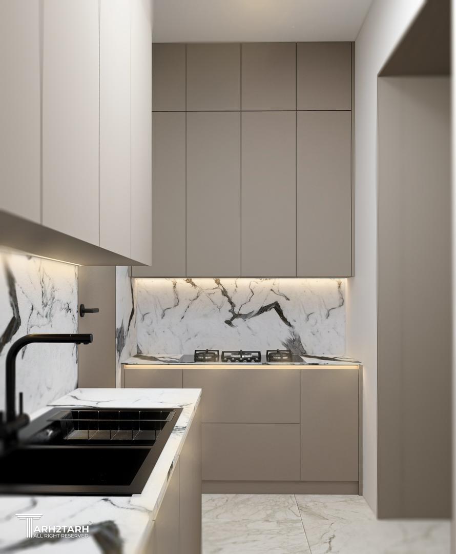 طراحی کابینت واحد های مسکونی ساختمانی در زعفرانیه تهران به سبک مدرن