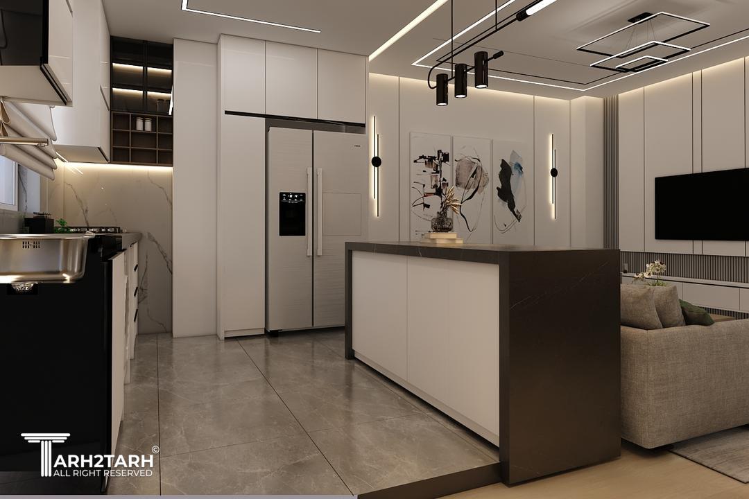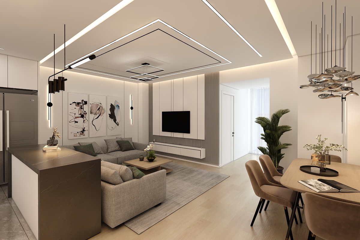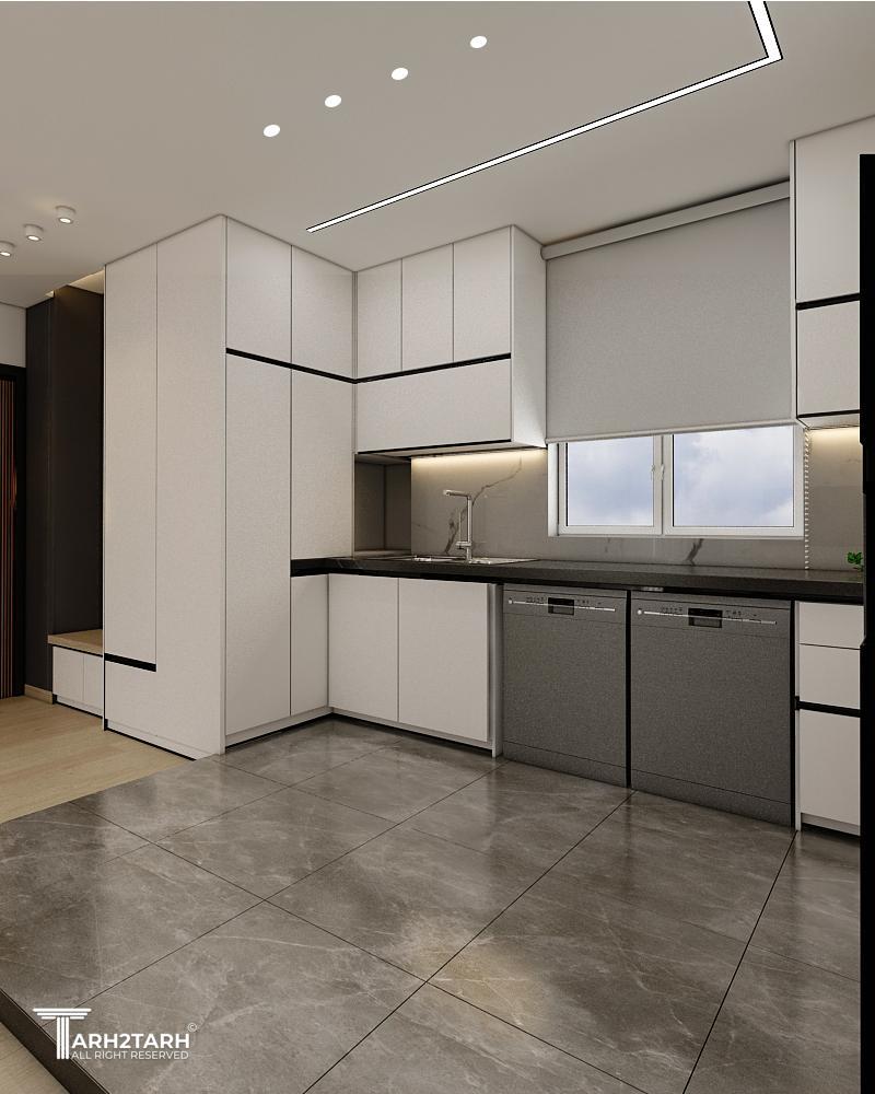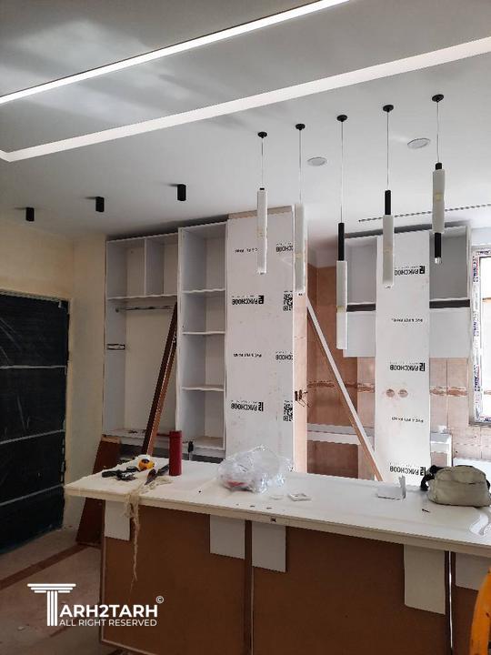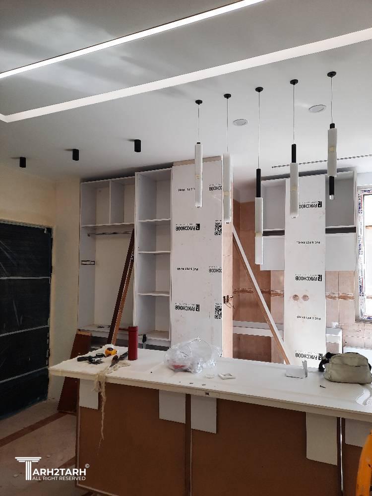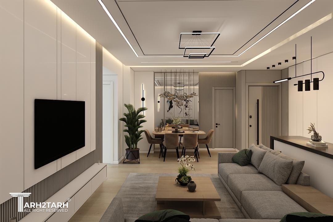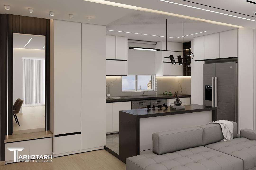 طراحی داخلی و بازسازی این آپارتمان که ۷۰ متر مربع بود به تیم ما سپرده شد .در ابتدا با توجه به خواسته کارفرما طراحی به سبک مدرن انجام شد .سقف های کاذب .بدنه ها درب ورودی ..کابینت ها و کمد های دیواری می بایست مجددا ساخته .اجرا و نصب میشدند.نور پردازی سقف و اتاق ها با استفاده از نورهای خطی و هالوژن ها و لوستر ها و چراغ های آویز انجام شد .