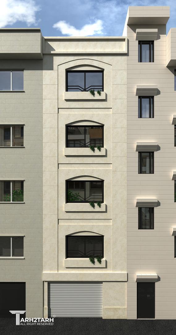 طراحی نمای ساختمان مسکونی با نمای سنگی با الهام از ساختمان های مجاور - نظر کارفرما - و محدودیت های شهرداری