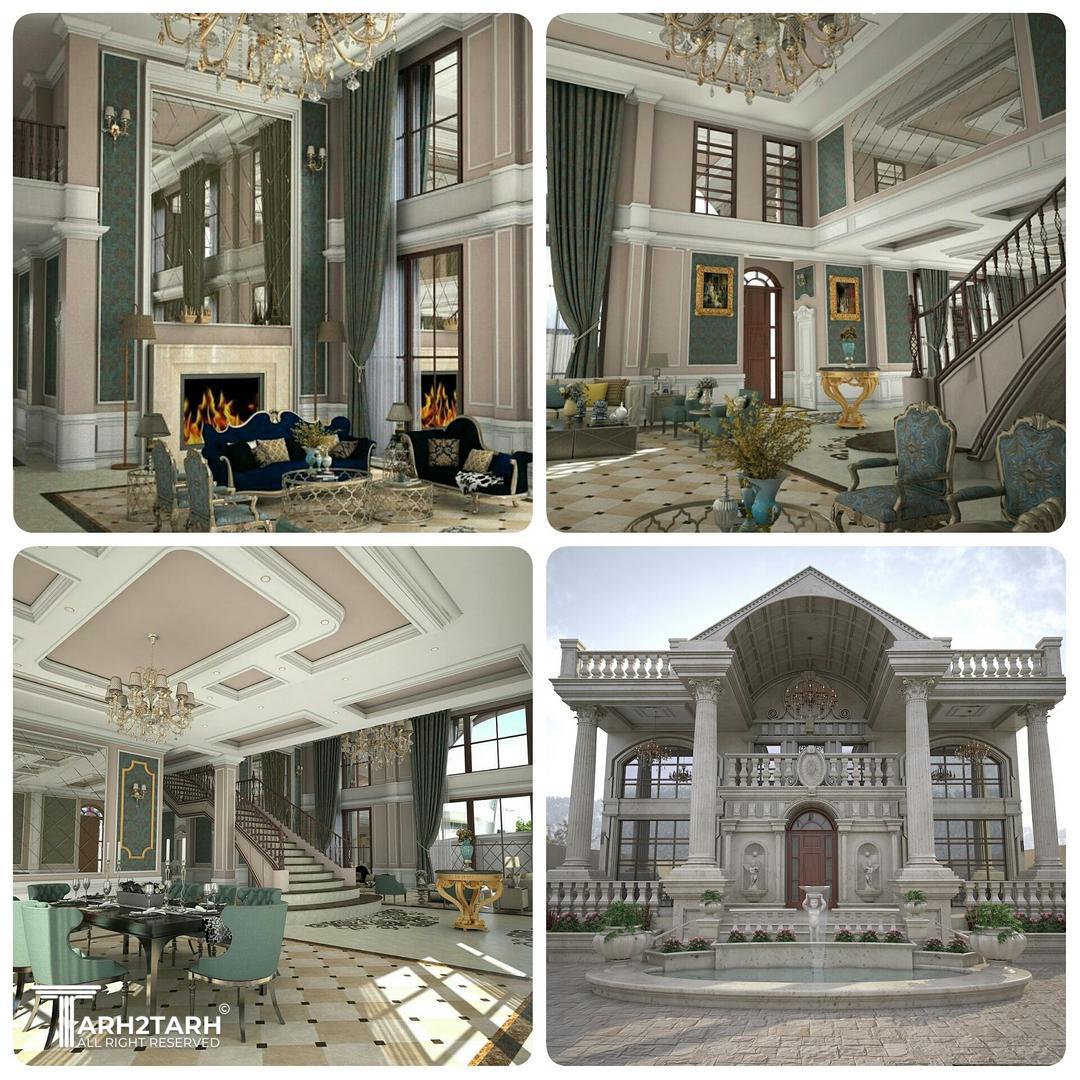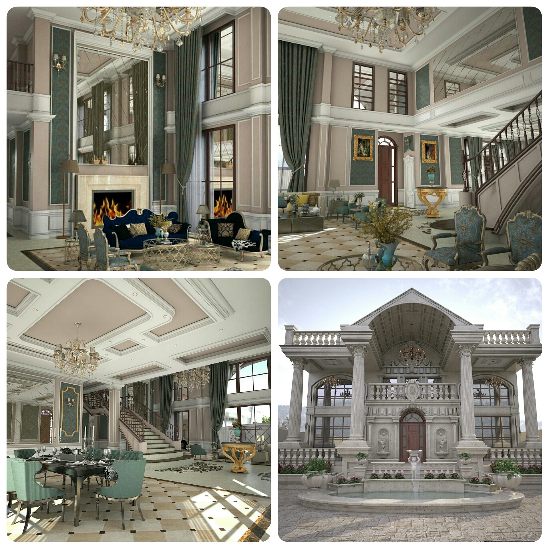 طراحی نما و طراحی داخلی به سبک کلاسیک و همچنین طراحی محوطه ویلا به سبک کلاسیک
