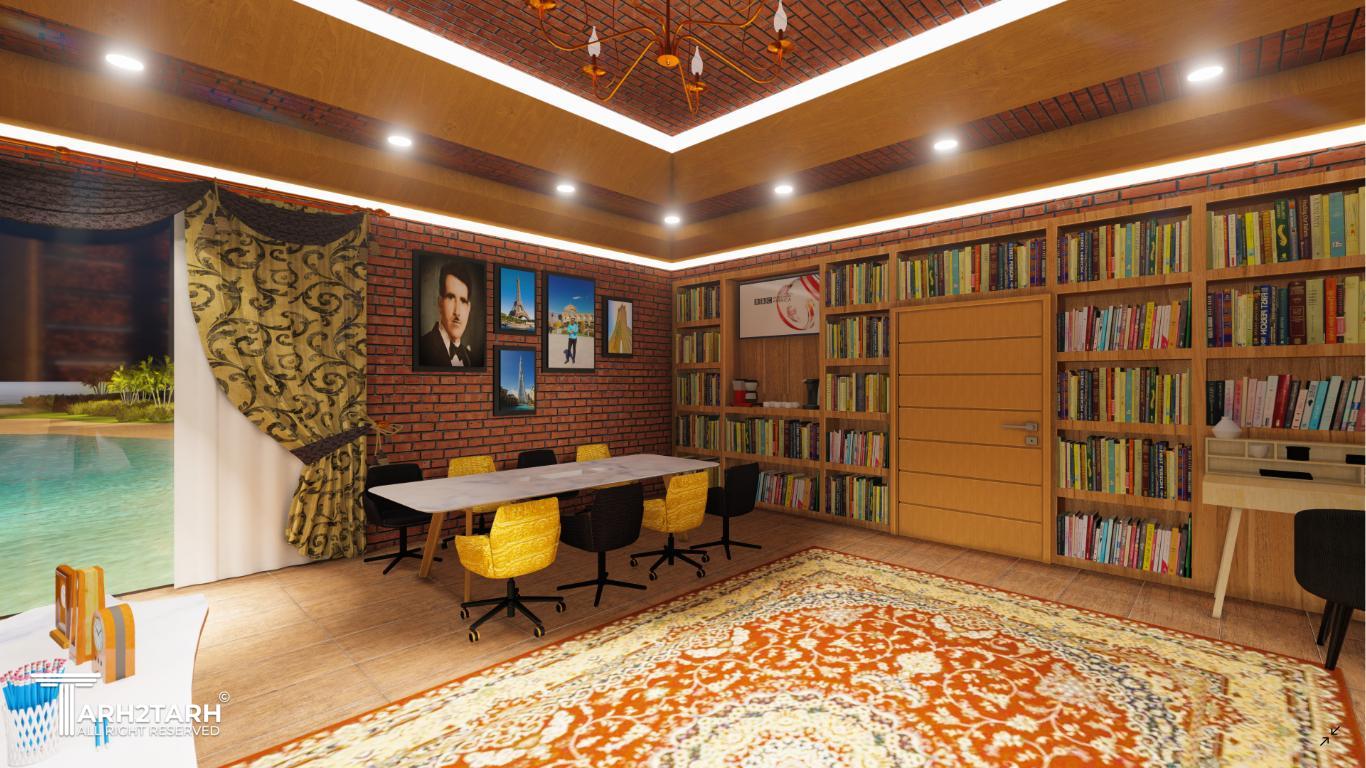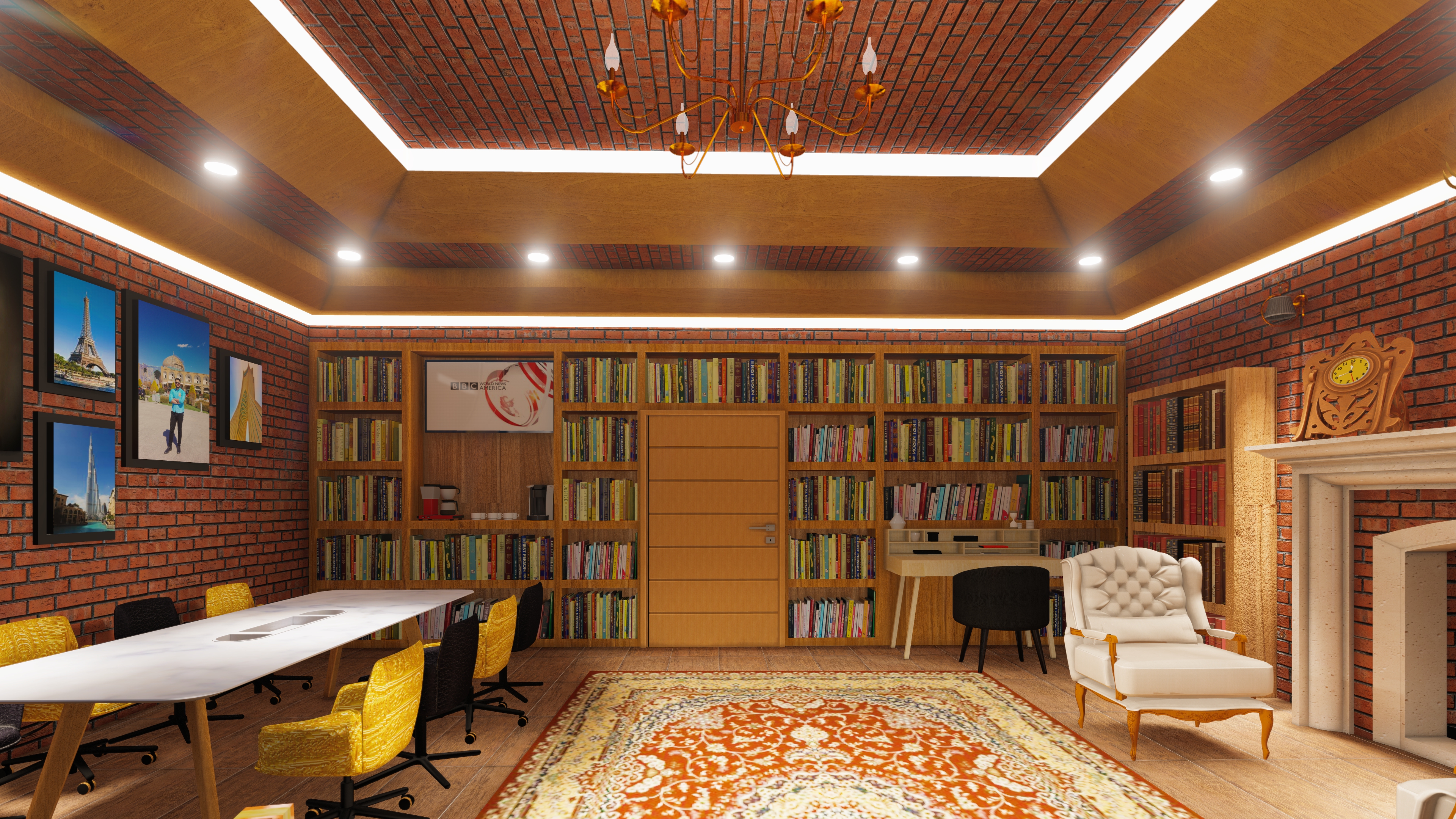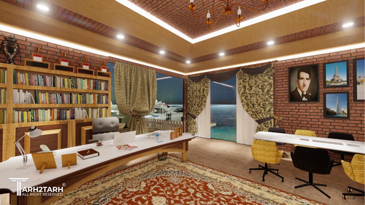 طراحی 3D سبک کلاسیک و گرم دفتر حقوقی