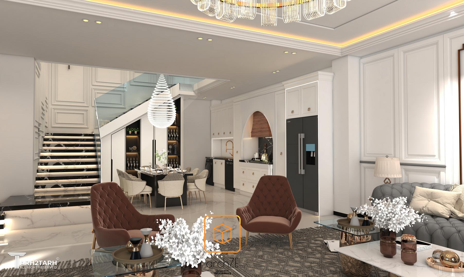 این پروژه بر پایهی نئوکلاسیک مدرن شکل گرفته است؛ ترکیبی از وقار کلاسیک و سادگی معاصر.کانسپت بر ایجاد لوکسبودن آرام، ماندگاری بصری و تعادل بین کلاسیک و مدرن تمرکز دارد؛ نمایی شیک، بیزمان و مناسب پروژههای مسکونی خاص.