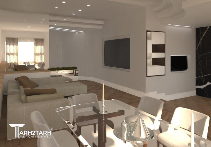 طراحی داخلی و دکوراسیون واحد مسکونی 176 متری (آشپزخانه،نشیمن،پذیرایی)