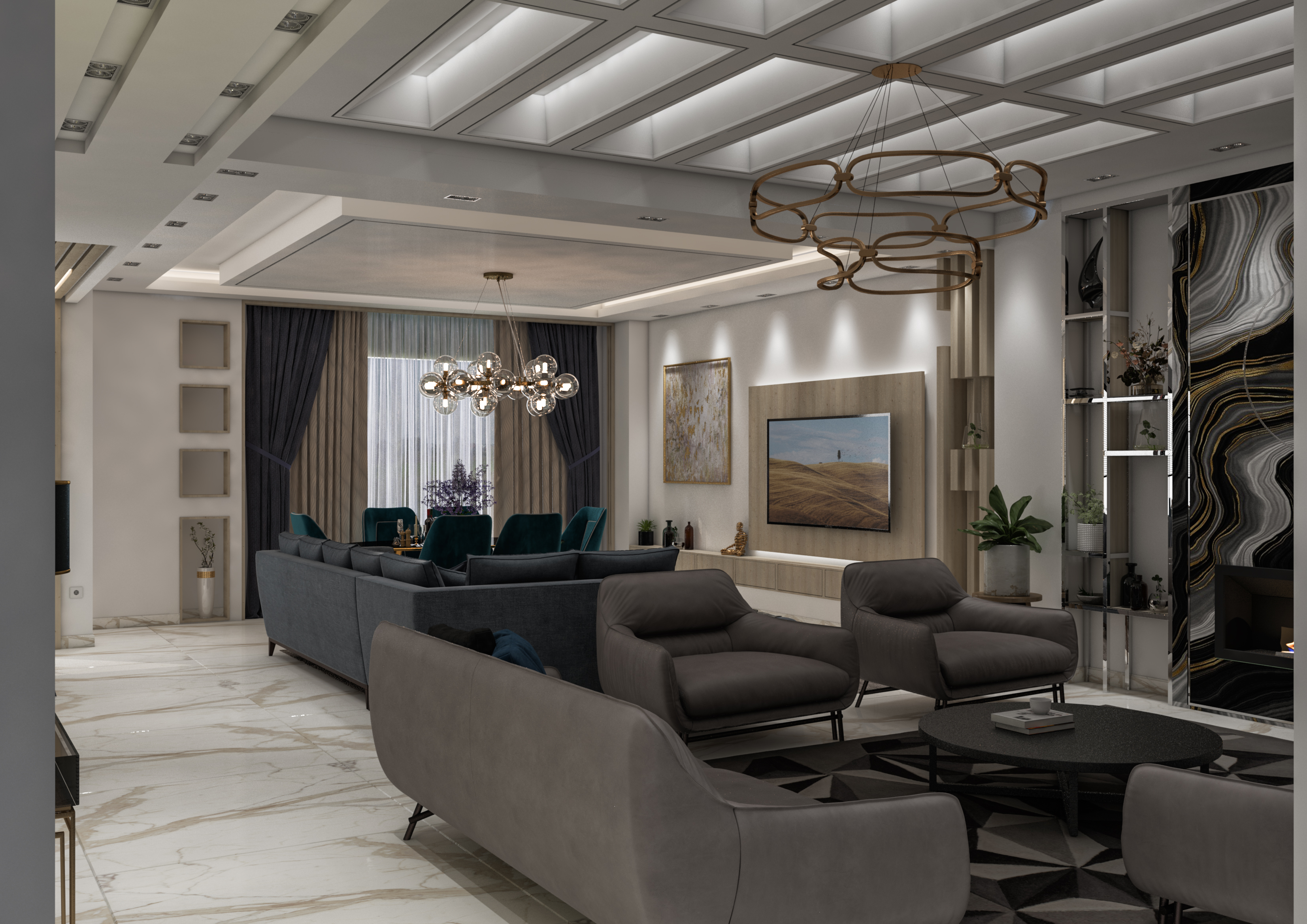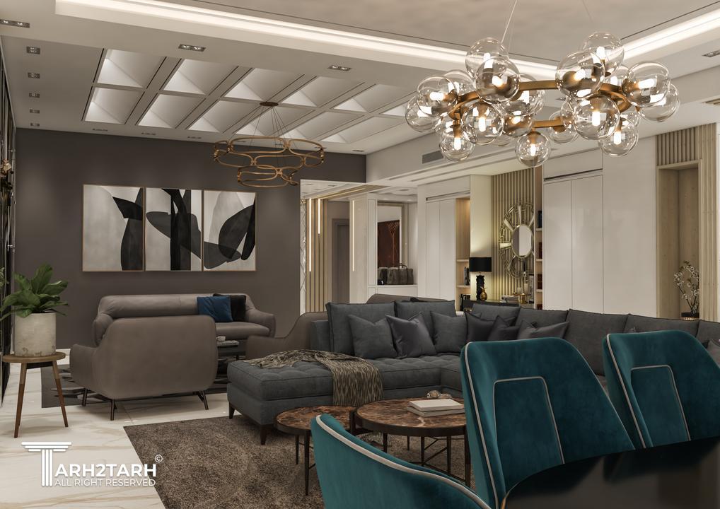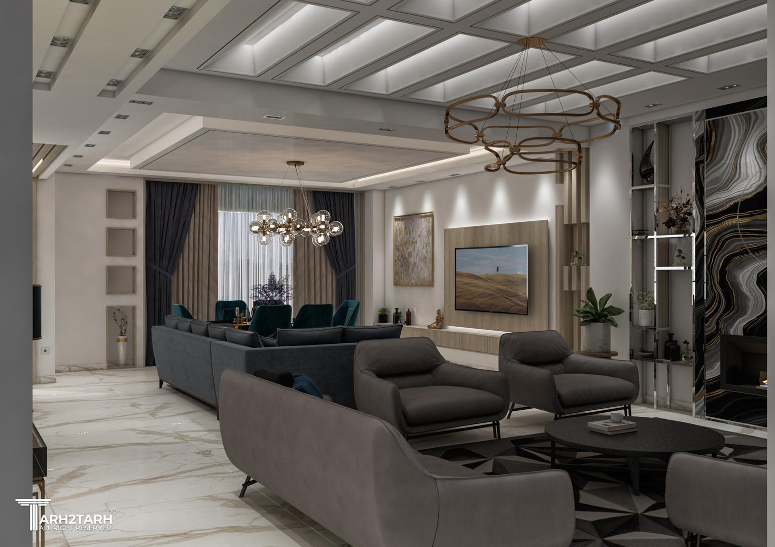 طراحی مدرن واحد 160متر مربعی. سمت نشیمن و هال پذیرایی