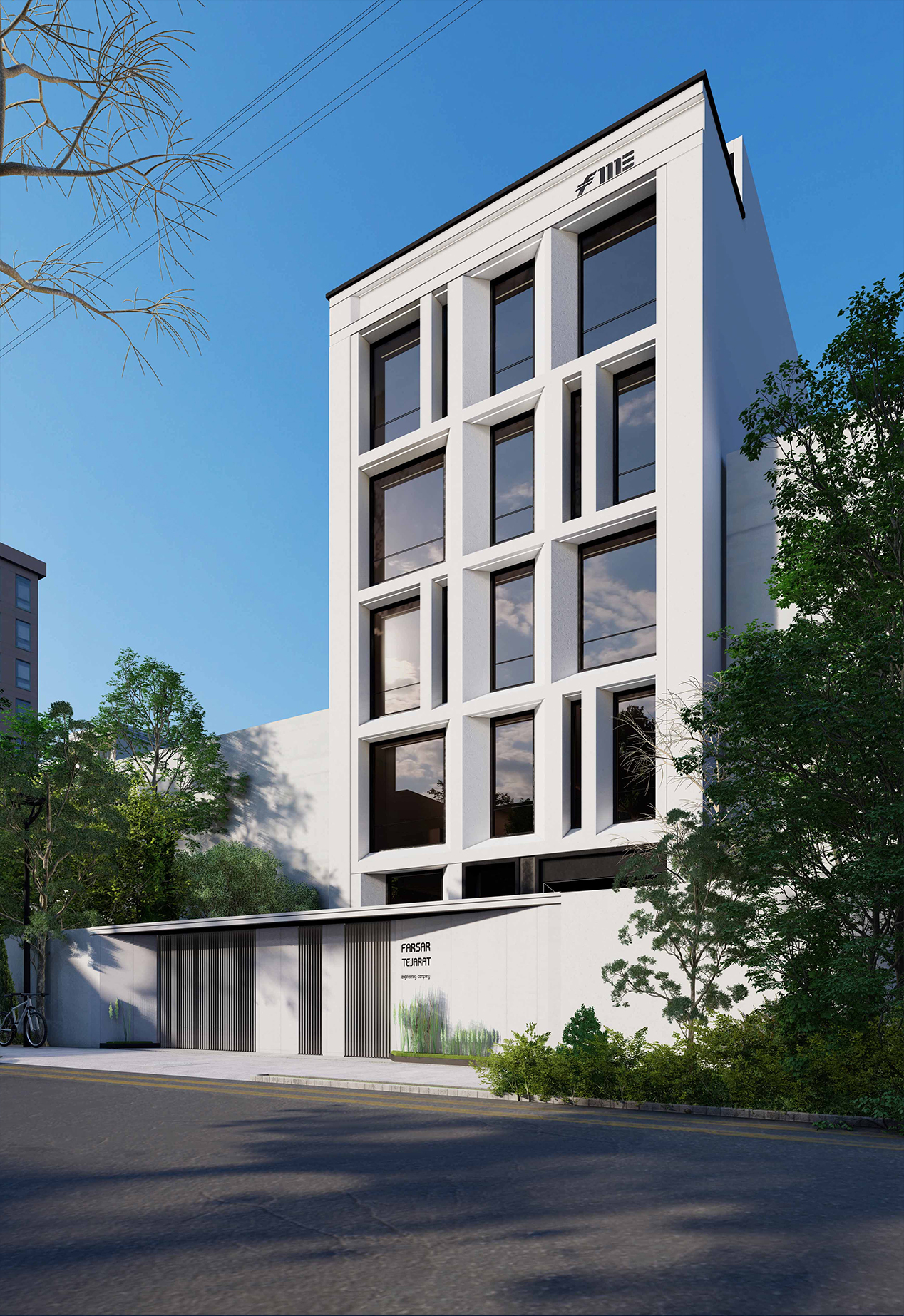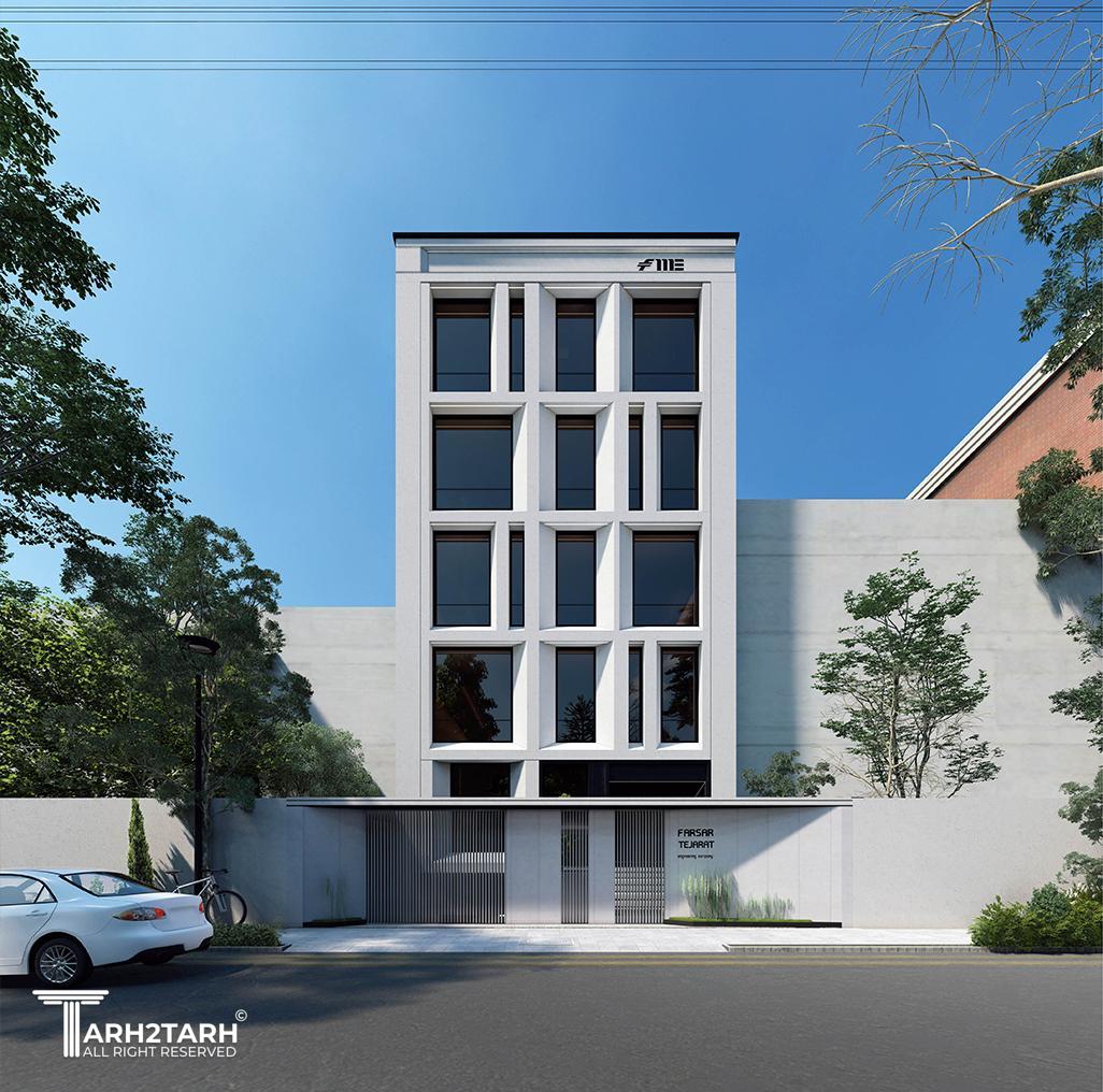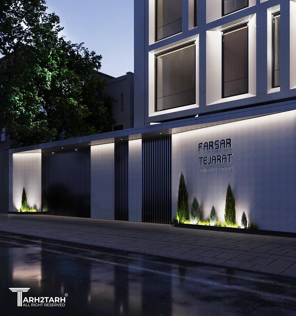 ساختمان اداری شرکت فرسار تجارت با طراحی مدرن، سازماندهی هوشمند فضاها و نماي مینیمال شفاف شکل گرفته تا محیطی حرفهای، پویا و کارآمد برای فعالیتهای شرکتی فراهم کند.