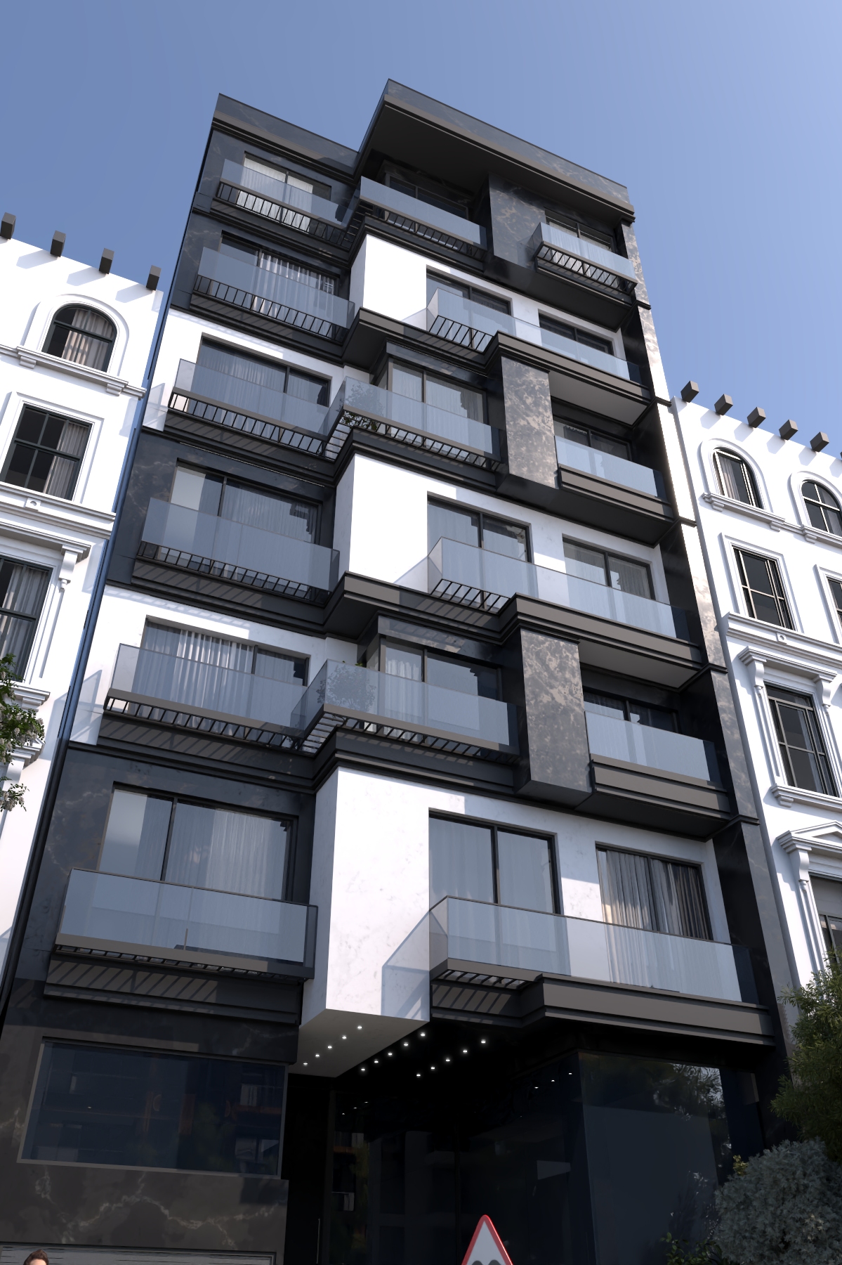 هدف، طراحی یک ساختمان مسکونی ۶ طبقه (شامل پارکینگ، مشاعات و ۵ طبقه مسکونی) است که در عین حفظ حریم خصوصی ساکنین، نهایت استفاده را از نور، دید و هوای پاک نیاوران ببرد. کانسپت اصلی: تلفیق حجمهای خالص مدرن با عناصری از طبیعت و “شفافیت کنترلشده”. ایده بر این است که حجم بنا، “صخرهای” در میان شهر باشد که در عین استحکام و پایداری، پنجرههایی رو به مناظر باز (شمال و جنوب) دارد.