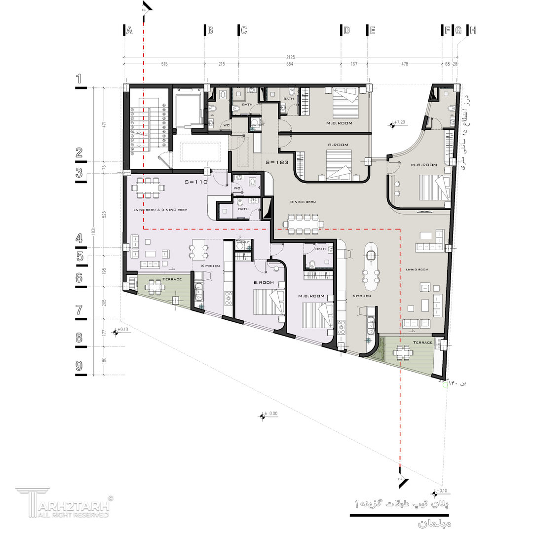 ضمن تشکر از زحمات خانم مهندس بدیعی عزیز که طرحی بسیار خاص، جسورانه و زیبا طراحی کردند. طراحی پلان بصورت مهندسی شده ارائه شد.